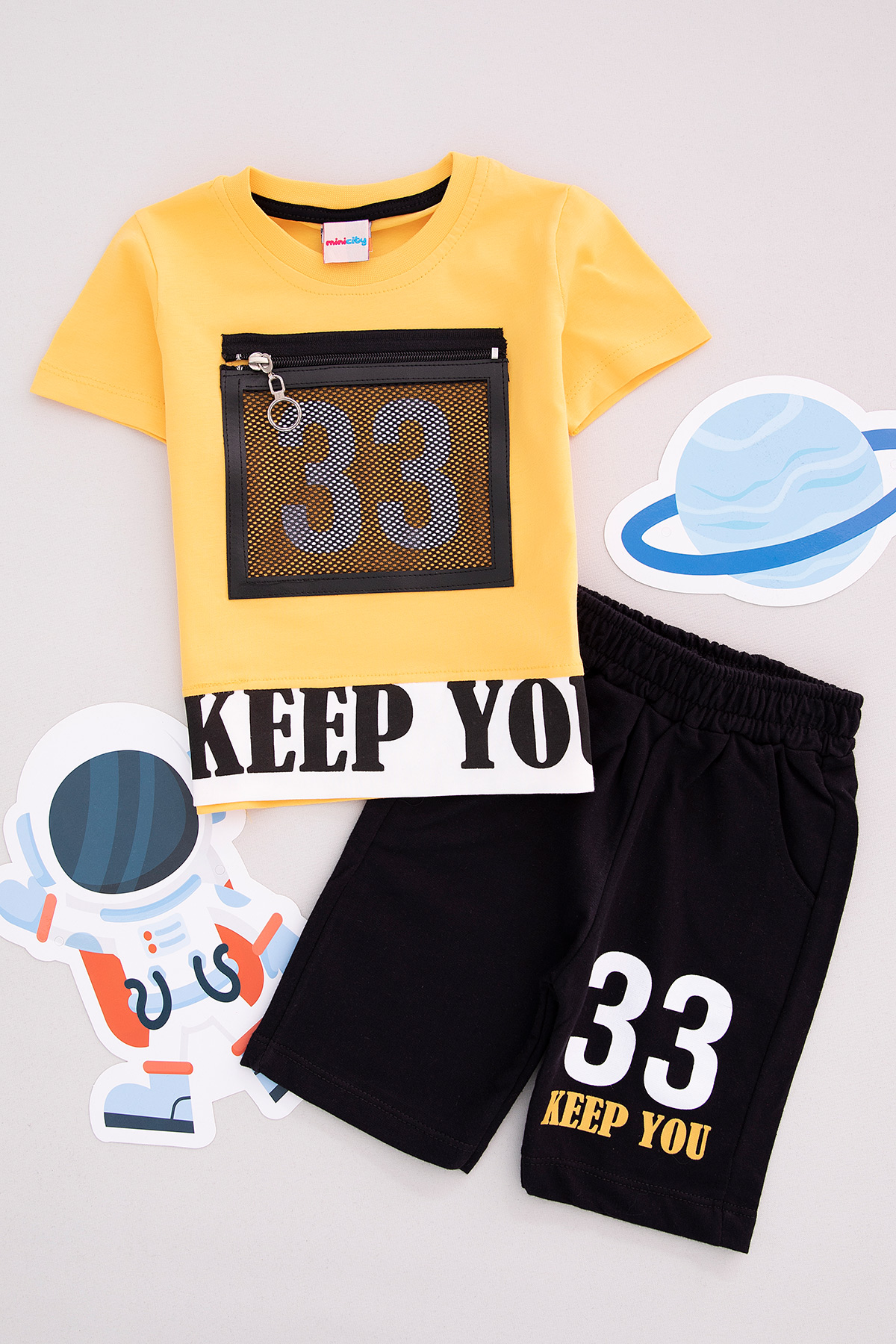 Erkek Çocuk Keep You Baskılı Şortlu Takım - M-329 (1-4 Yaş)