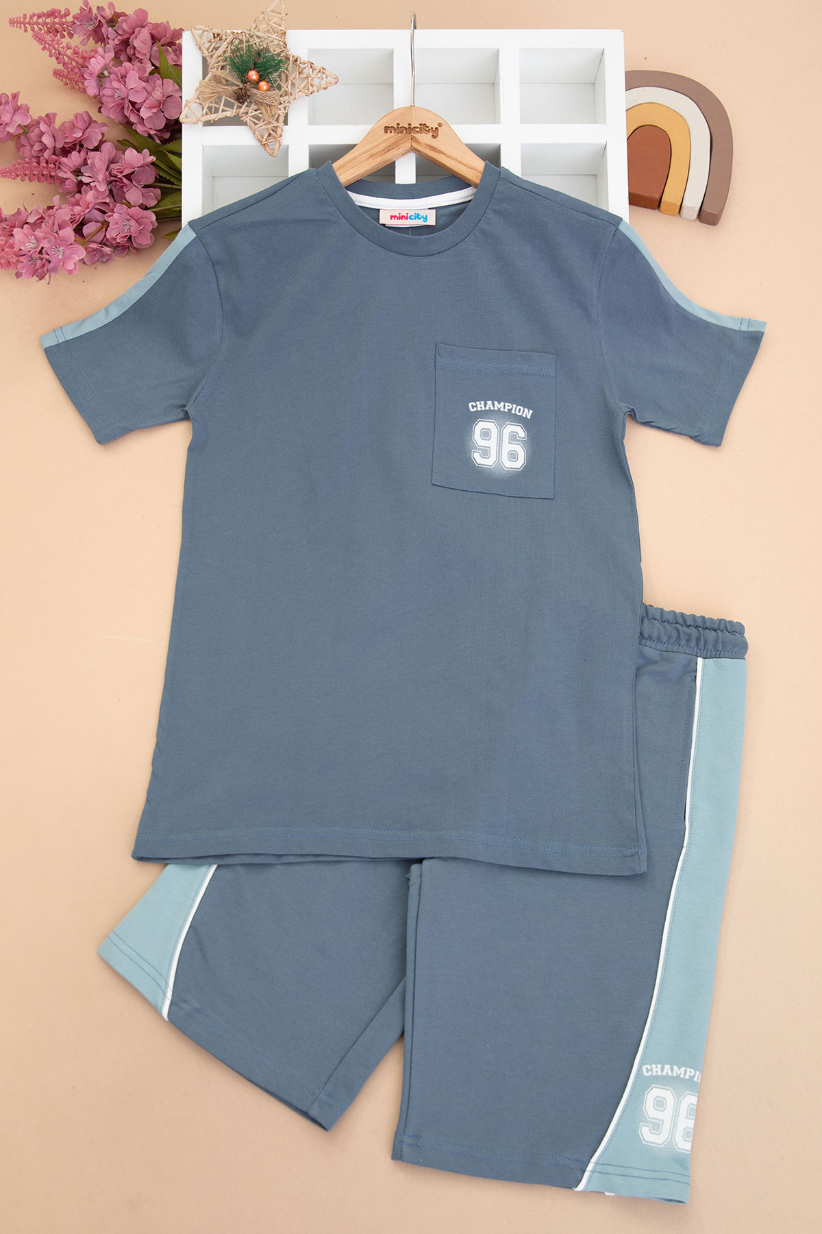 Erkek Çocuk Kollar Garnili Baskılı Takım - 8470 (11-14 Yaş)