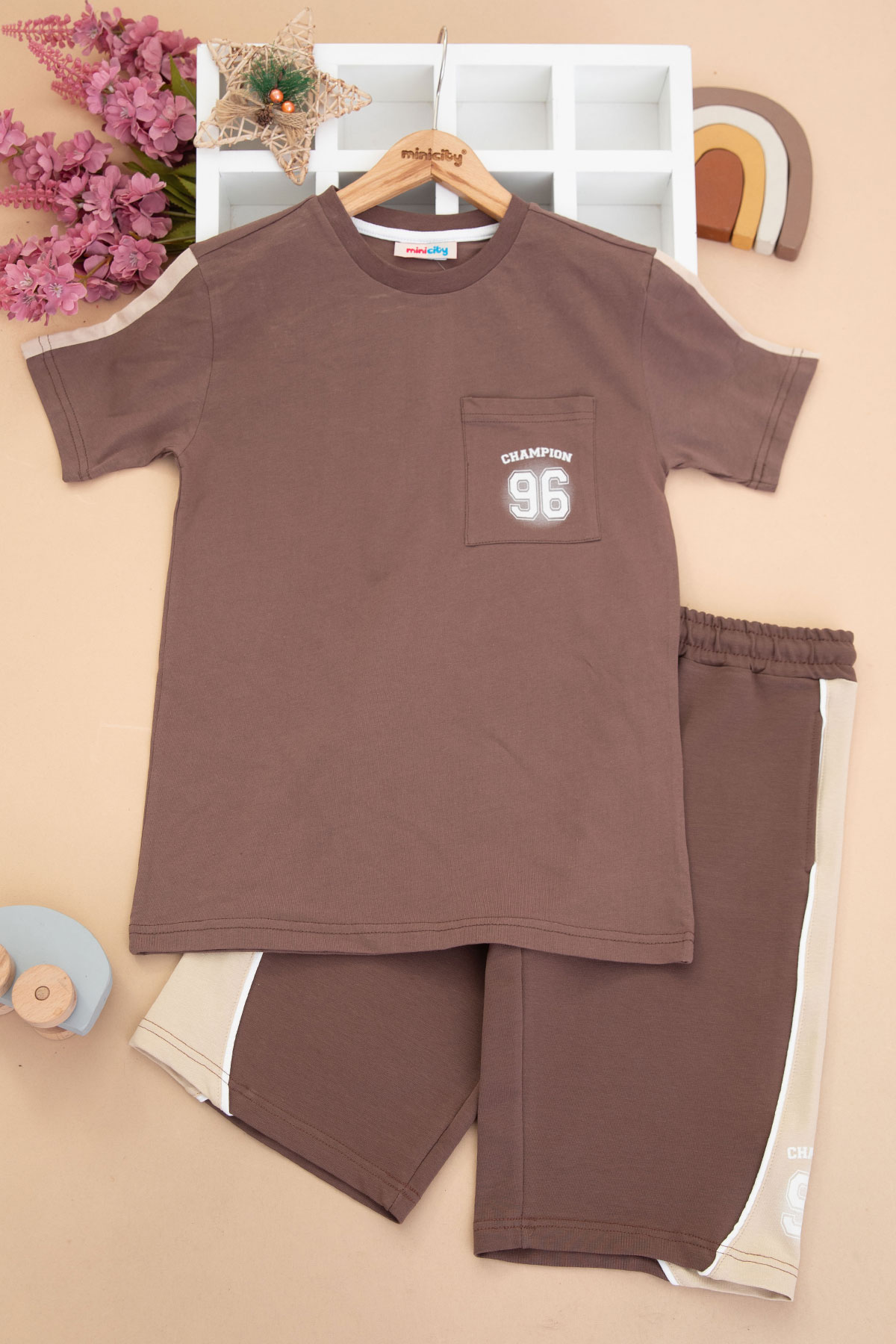 Erkek Çocuk Kollar Garnili Baskılı Takım - 8470 (11-14 Yaş)