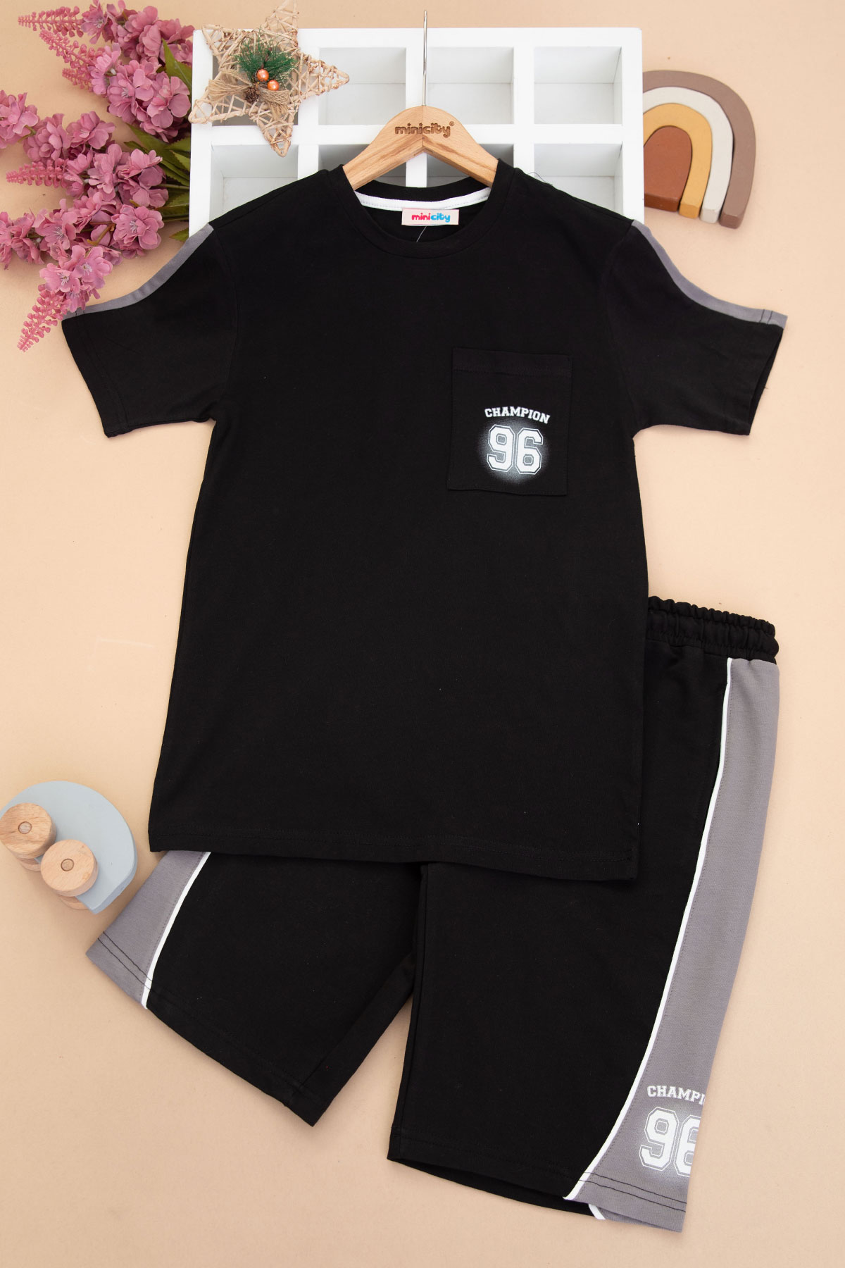Erkek Çocuk Kollar Garnili Baskılı Takım - 8470 (11-14 Yaş)