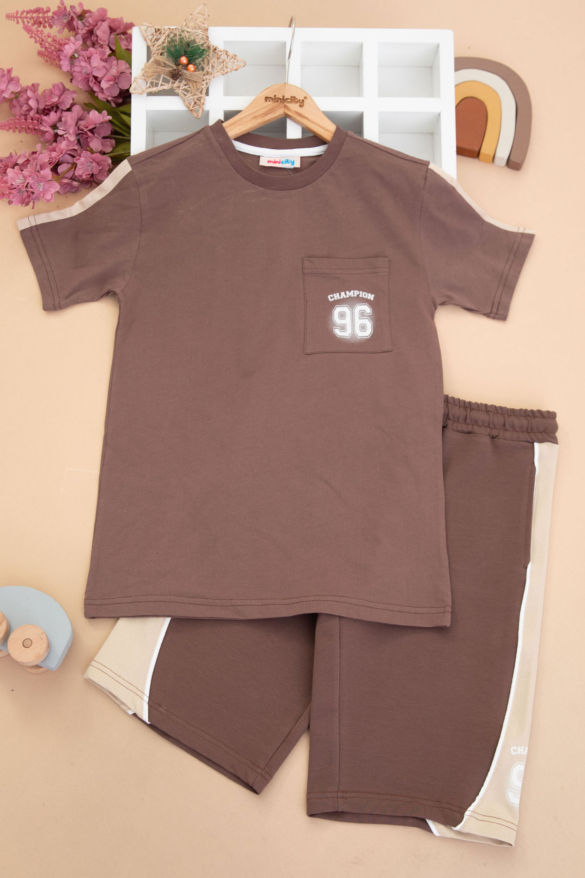 Erkek Çocuk Kollar Garnili Baskılı Takım - 8470 (7-10 Yaş)