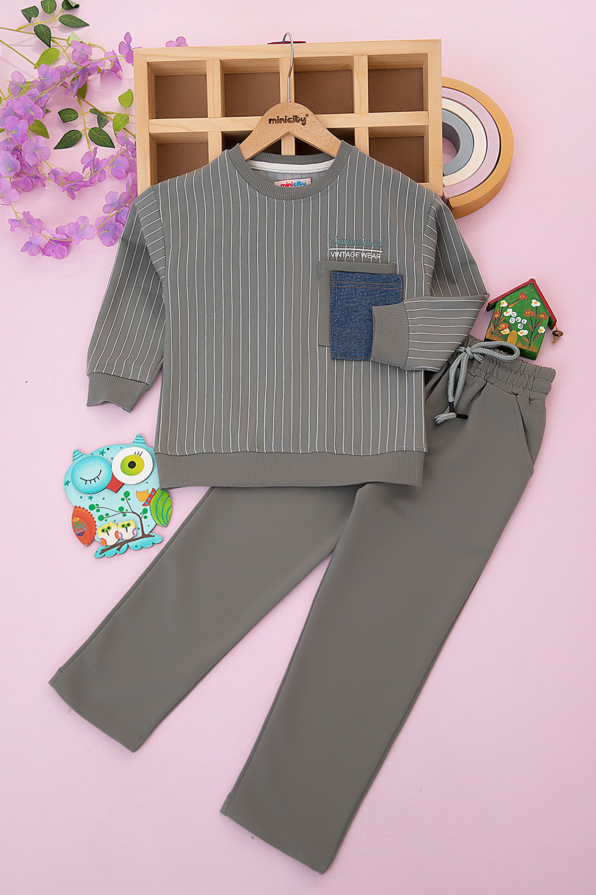 Erkek Çocuk Kot Cepli Çizgili Takım - 200920 (4-11 Yaş)