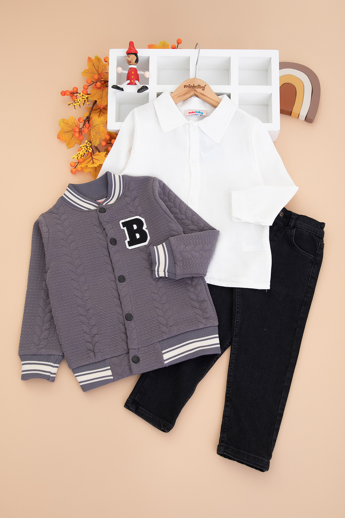 Erkek Çocuk Kotlu Gömlekli Üçlü Takım - 26023 (3-6 Yaş)