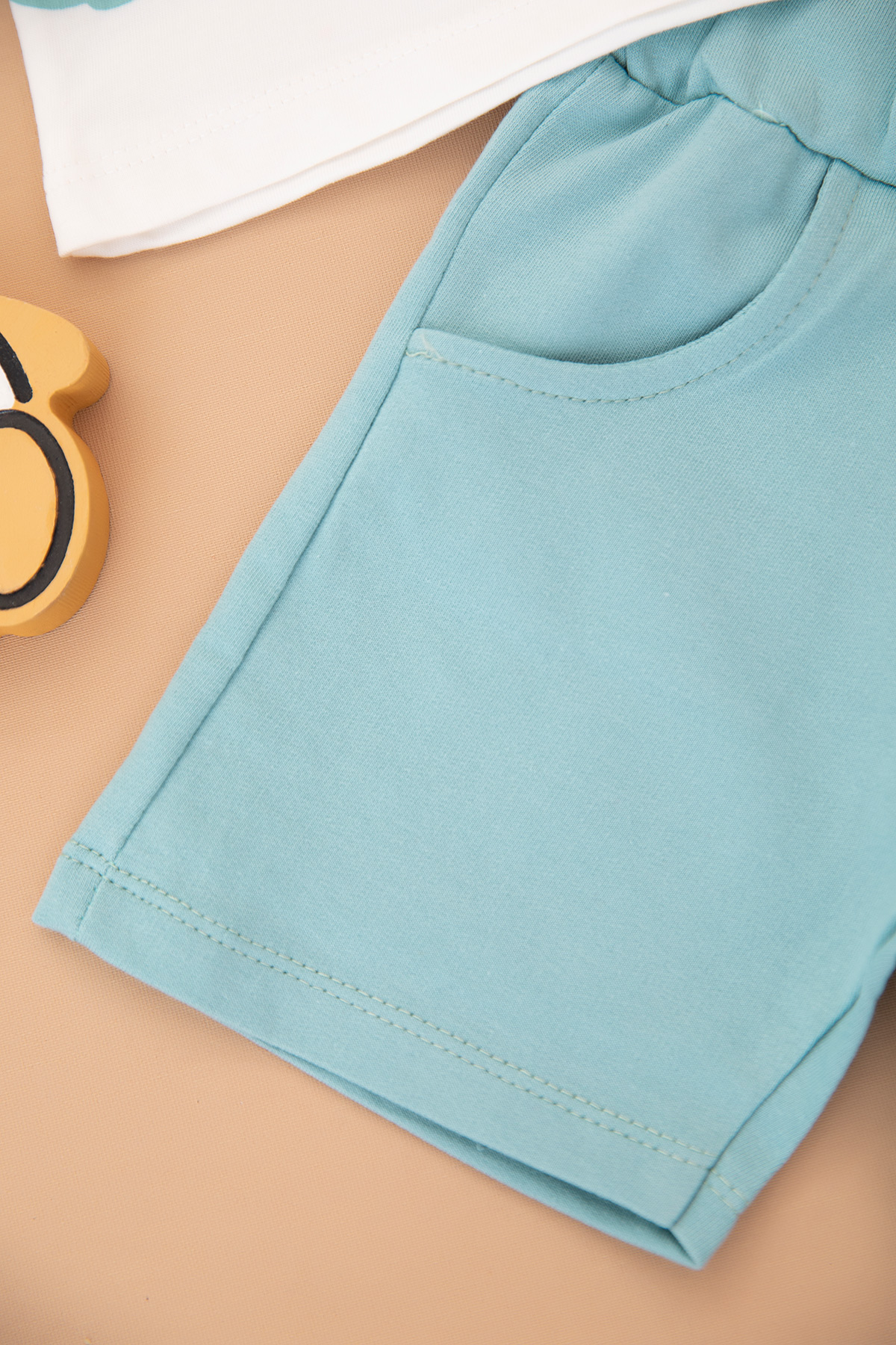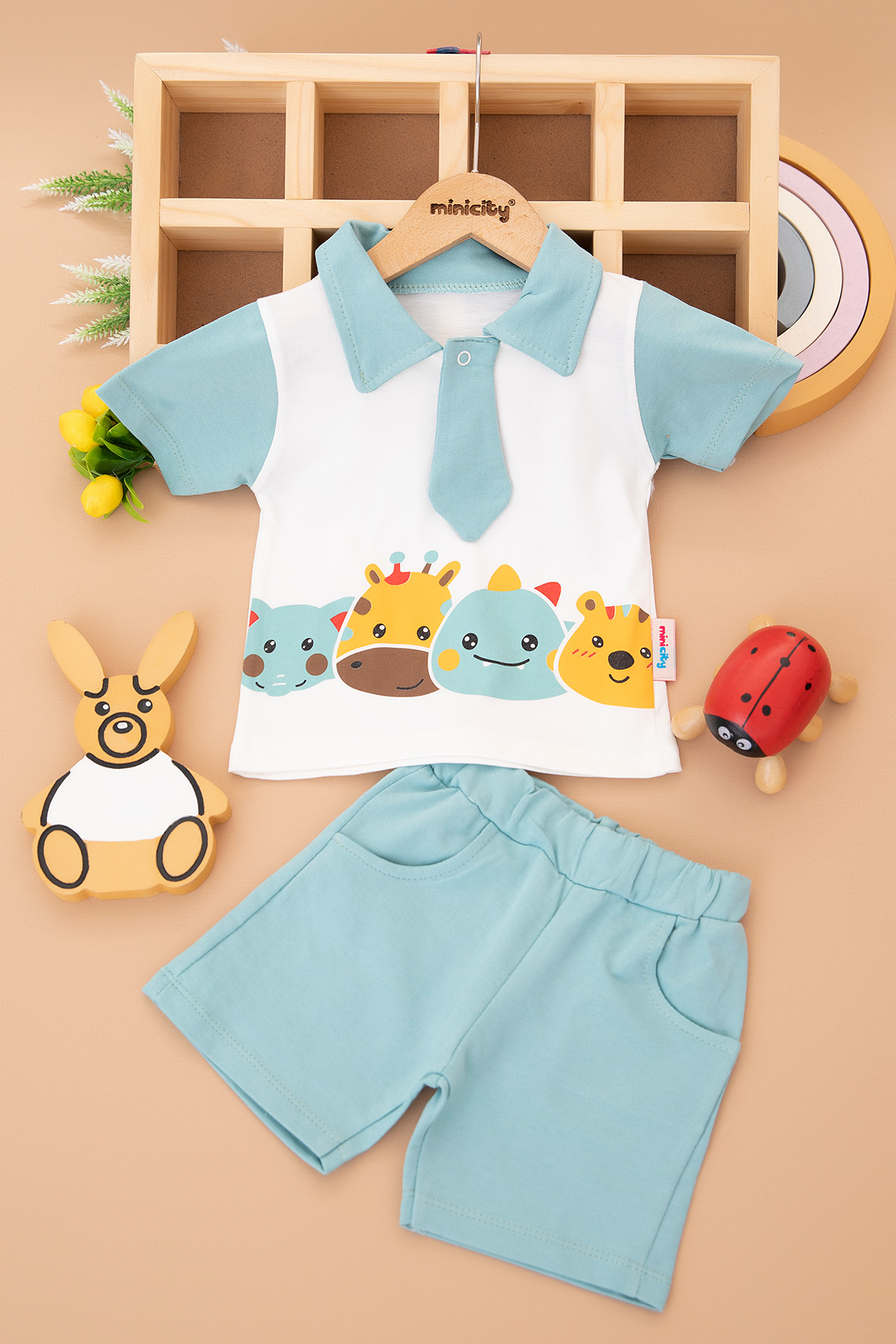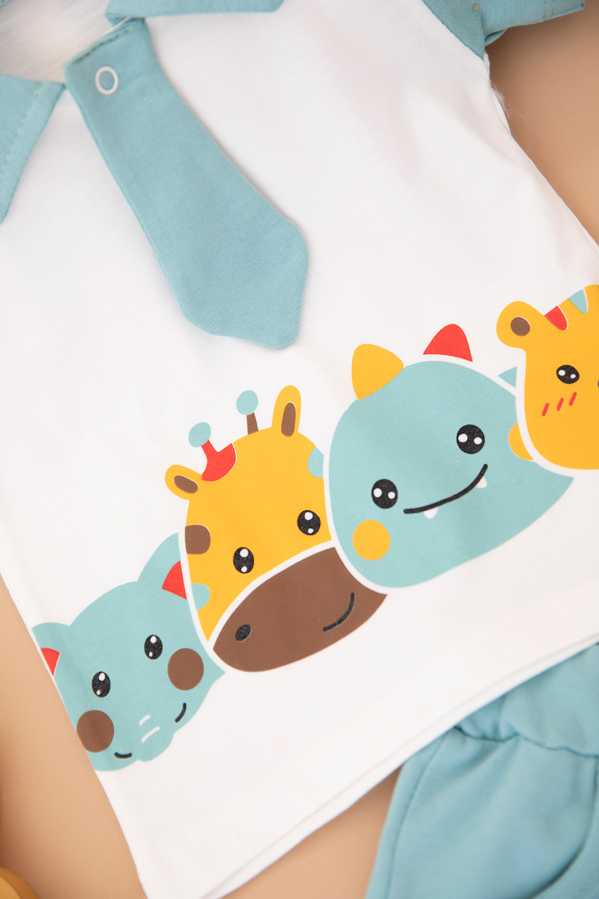 Erkek Çocuk Kravatlı Baskılı Şortlu Takım - 3001 (1-3 Yaş)