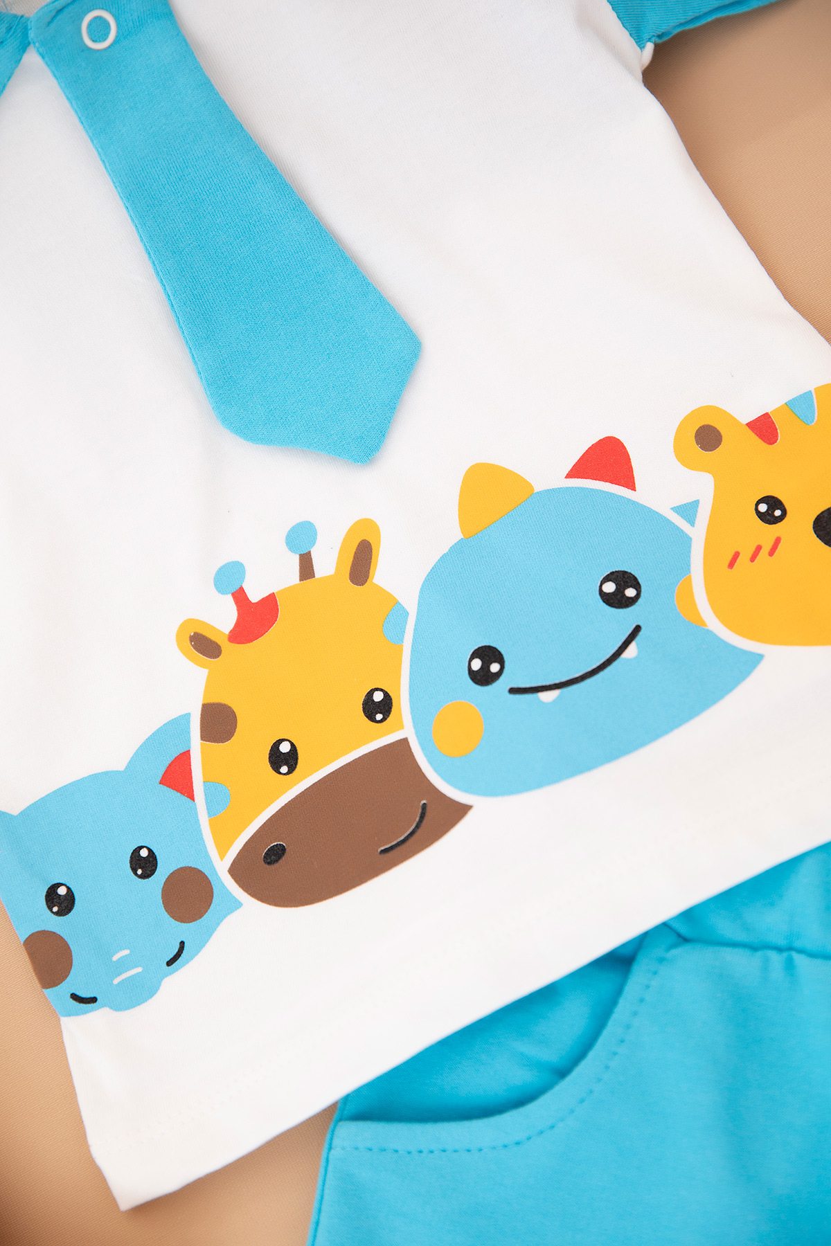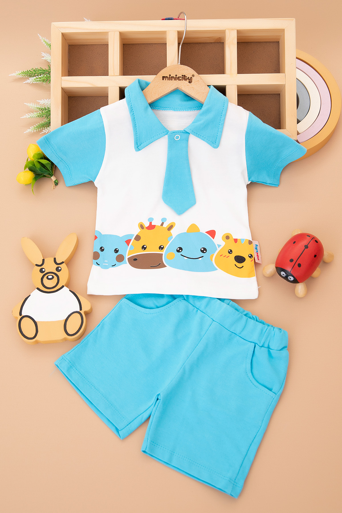 Erkek Çocuk Kravatlı Baskılı Şortlu Takım - 3001 (1-3 Yaş)