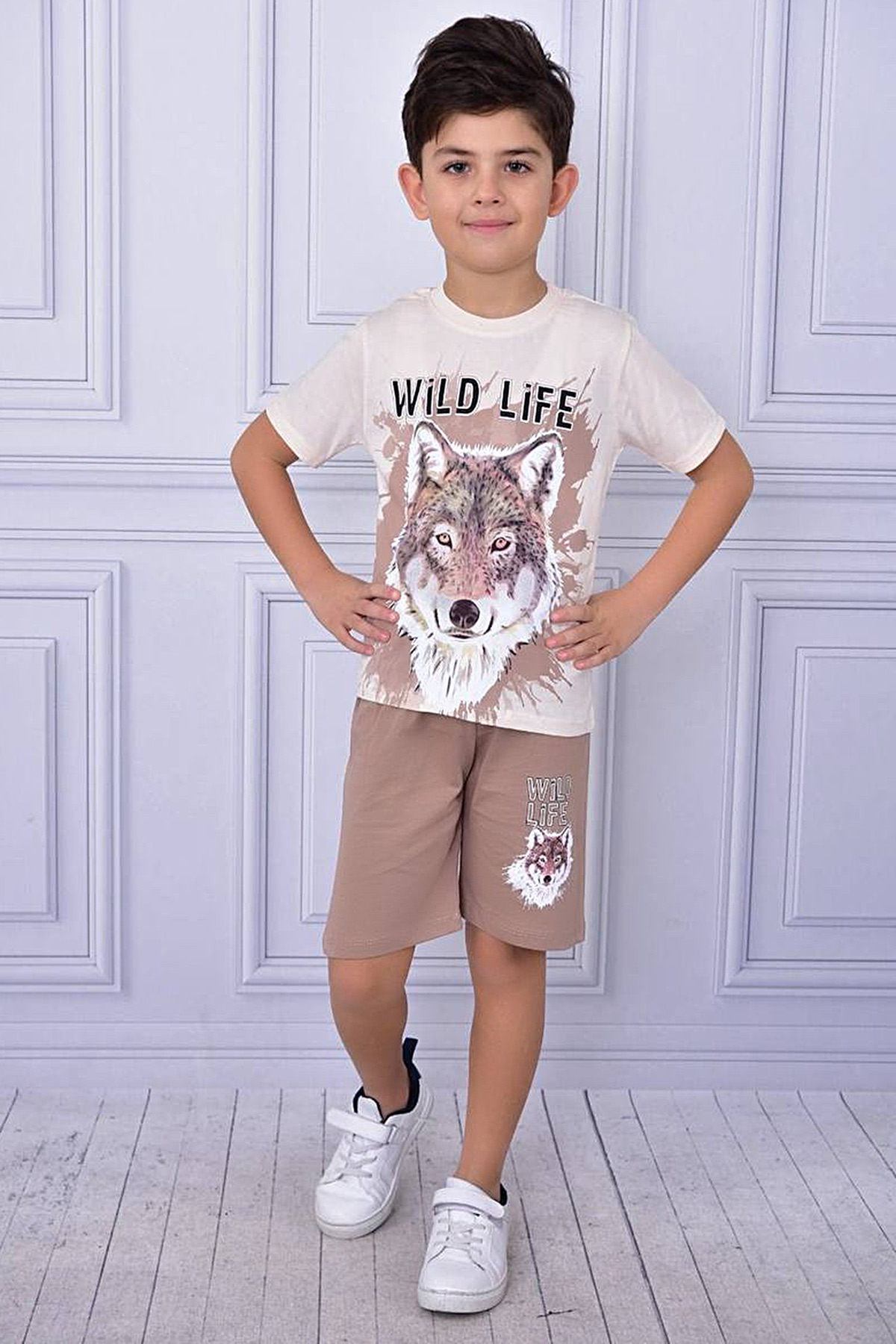 Erkek Çocuk Kurt Desenli Şortlu Takım - 6268 (3-10 Yaş)