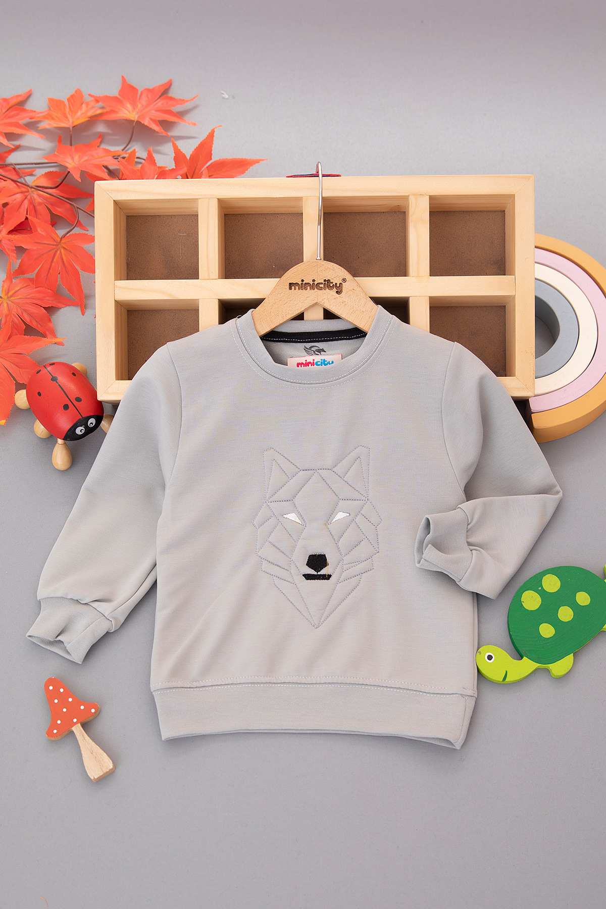 Erkek Çocuk Kurt Nakışlı Sweat - 190305 (3-12 Yaş)