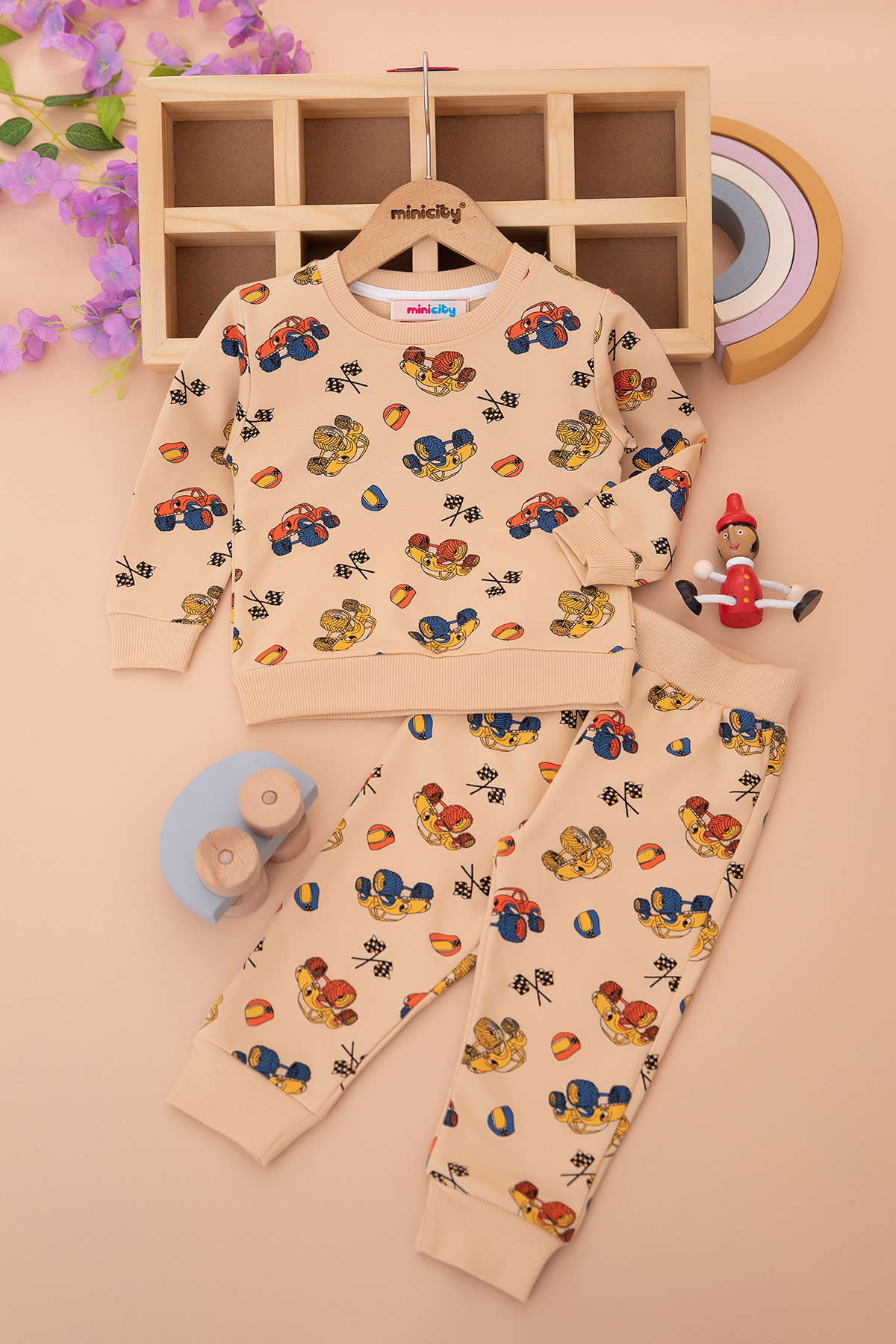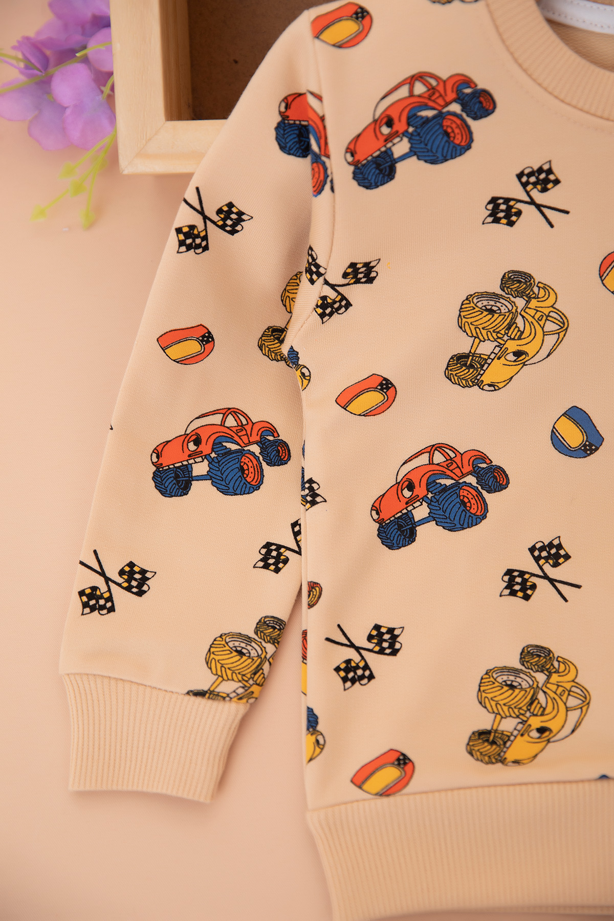 Erkek Çocuk Kuzu Araba Baskılı Takım - 24077 (1-4 Yaş)