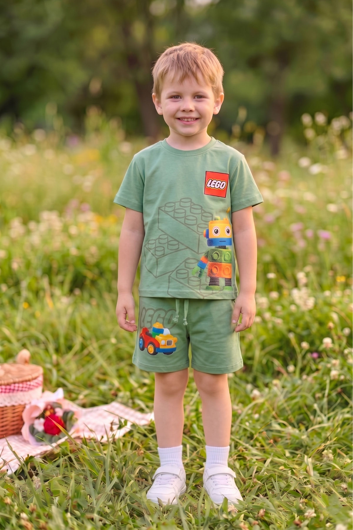 Erkek Çocuk Lego Yazılı Şortlu İkili Takım - 5468 (2-8 Yaş)