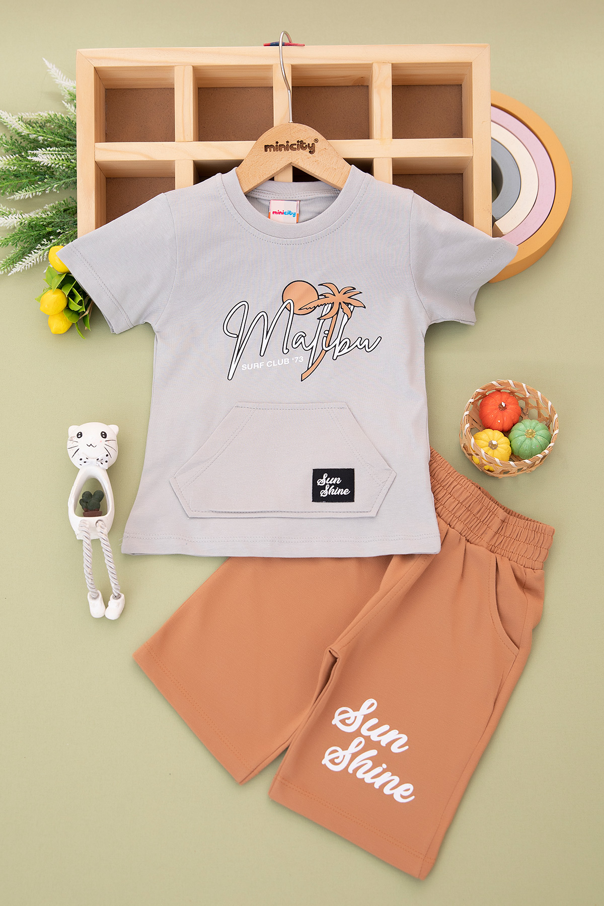Erkek Çocuk Malibu Baskılı Kaprili Takım - M-1063 (2-5 Yaş)