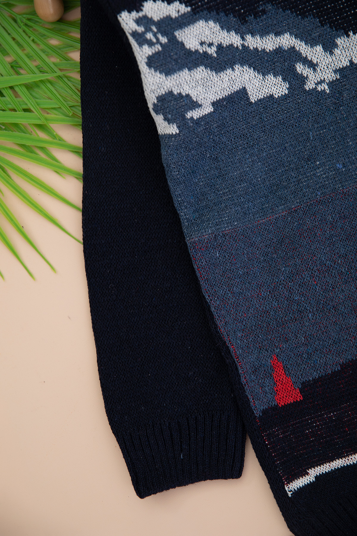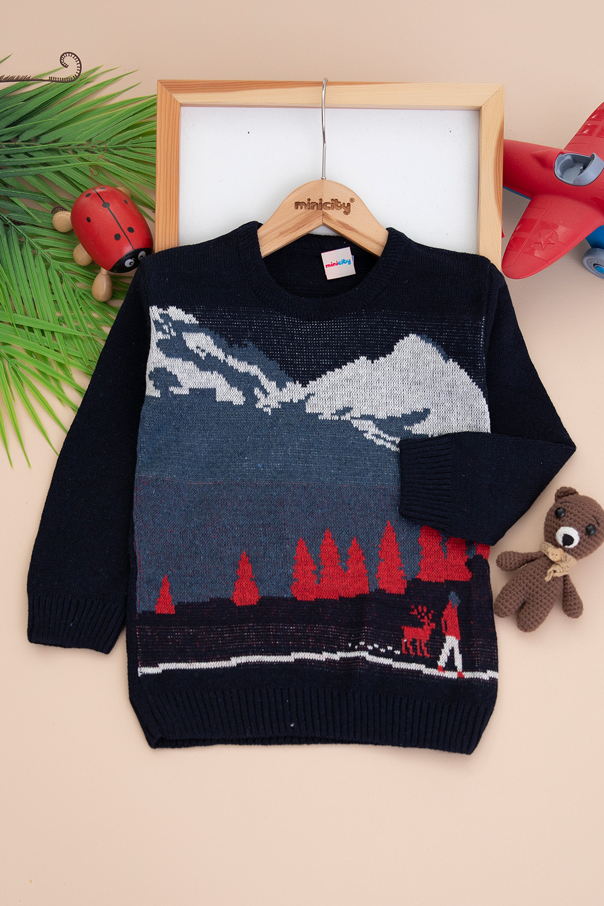 Erkek Çocuk Manzara Nakışlı Kazak (4-6 Yaş)