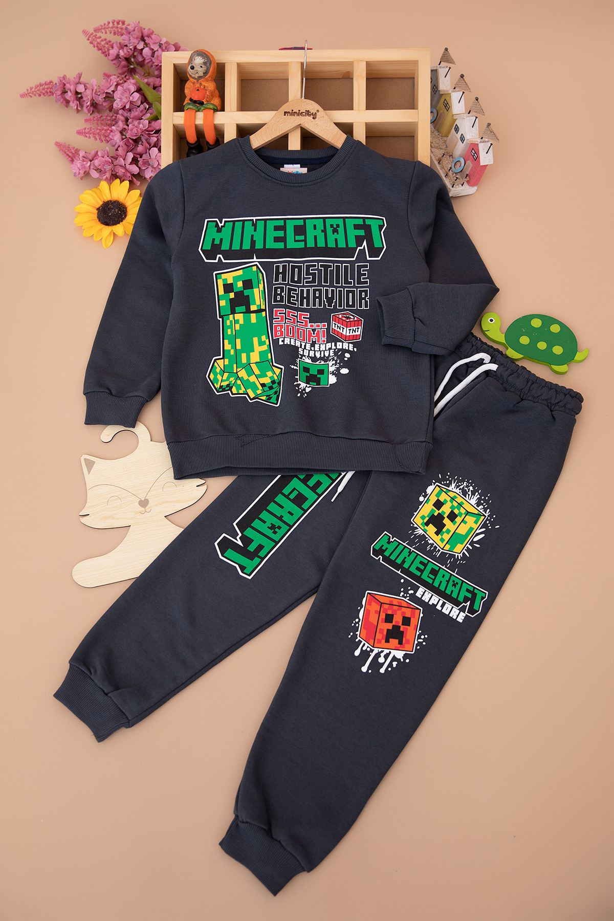 Erkek Çocuk Minecraft Baskılı Şardonlu Takım (10-14 Yaş)