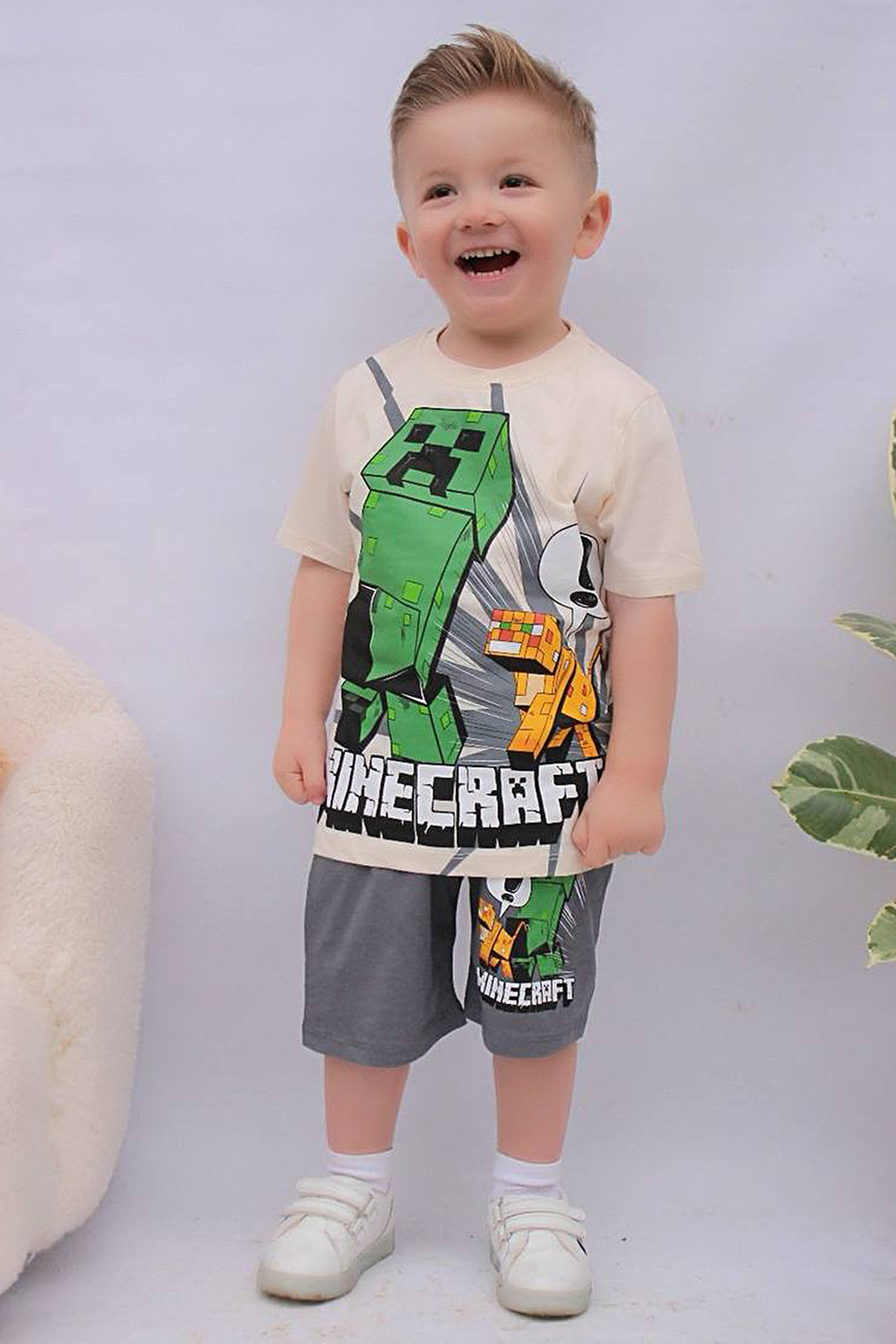 Erkek Çocuk Minecraft Baskılı Şortlu Takım - 6274 (3-10 Yaş)