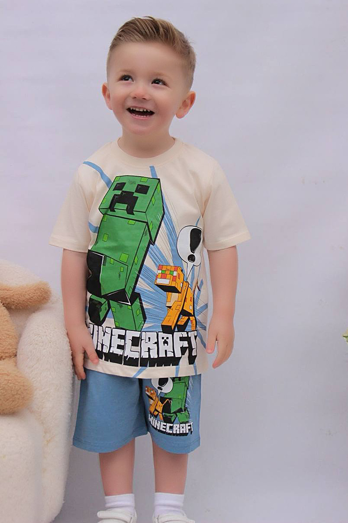 Erkek Çocuk Minecraft Baskılı Şortlu Takım - 6274 (3-10 Yaş)