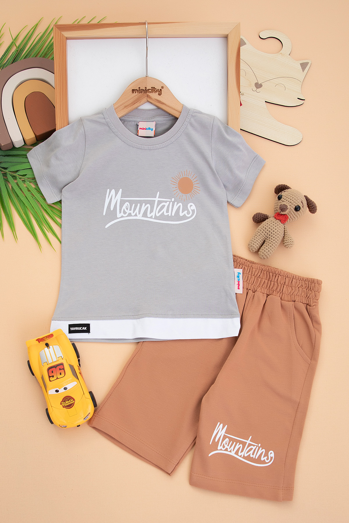 Erkek Çocuk Mountains Baskılı Kaprili Takım - M-2079 (6-9 Yaş)