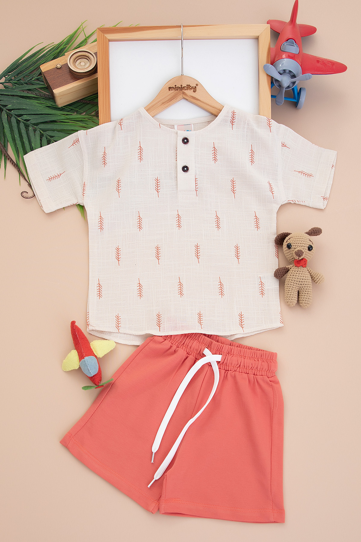 Erkek Çocuk Müslin Baskılı Şortlu Takım - 11151 (2-6 Yaş)