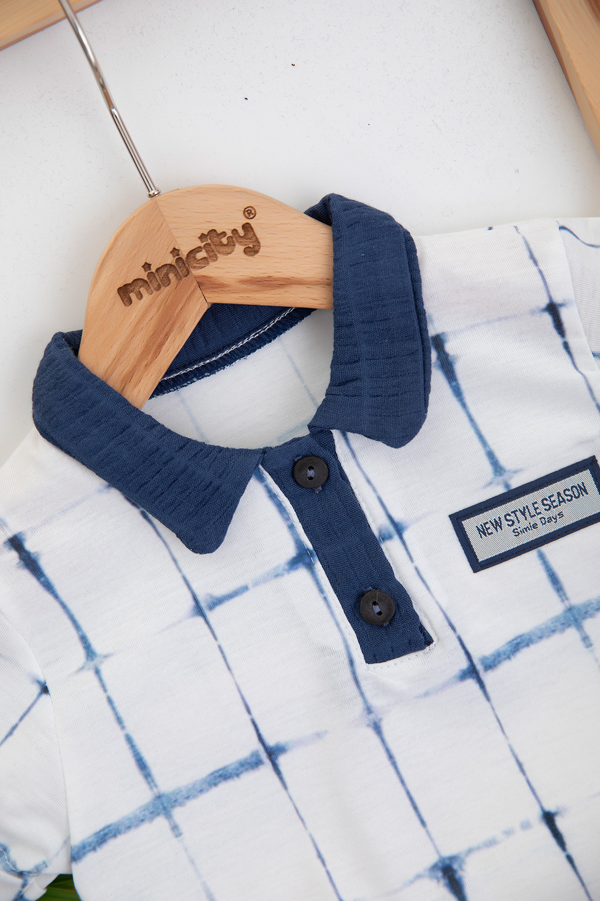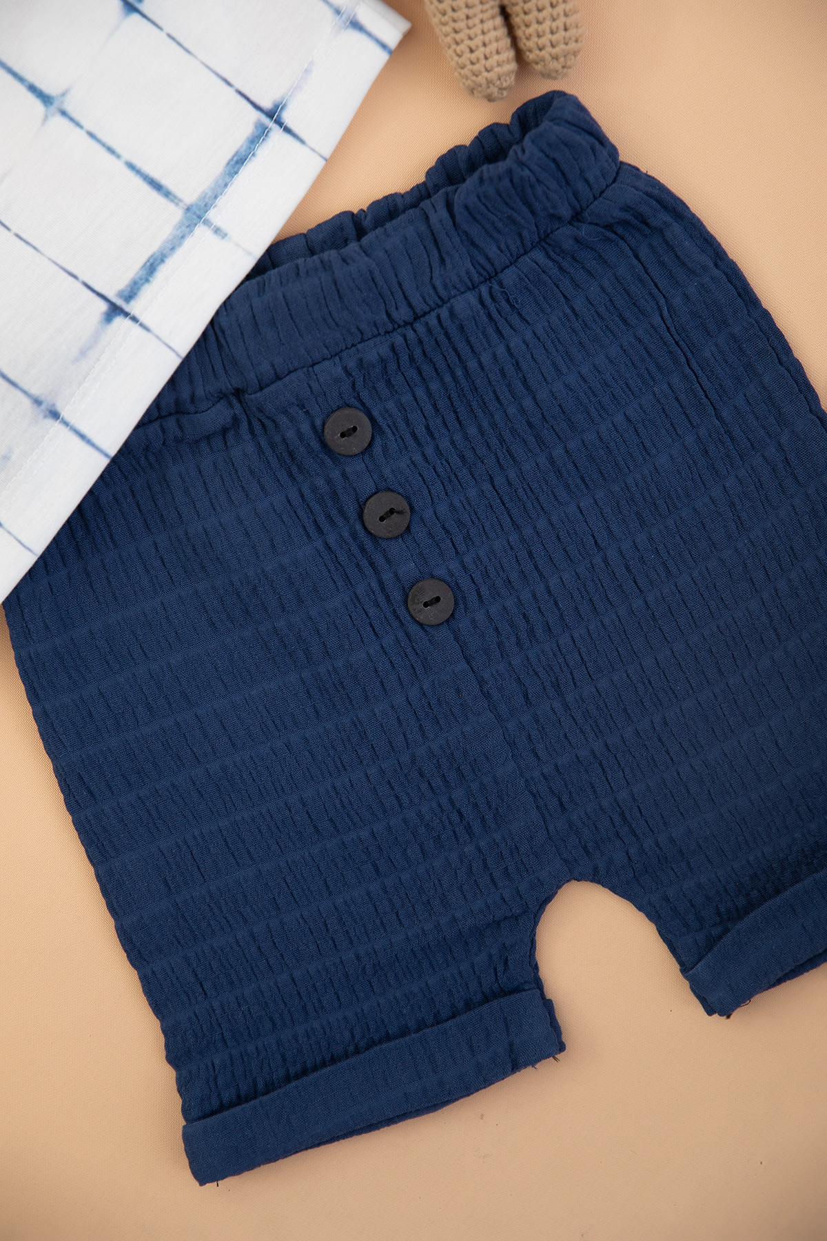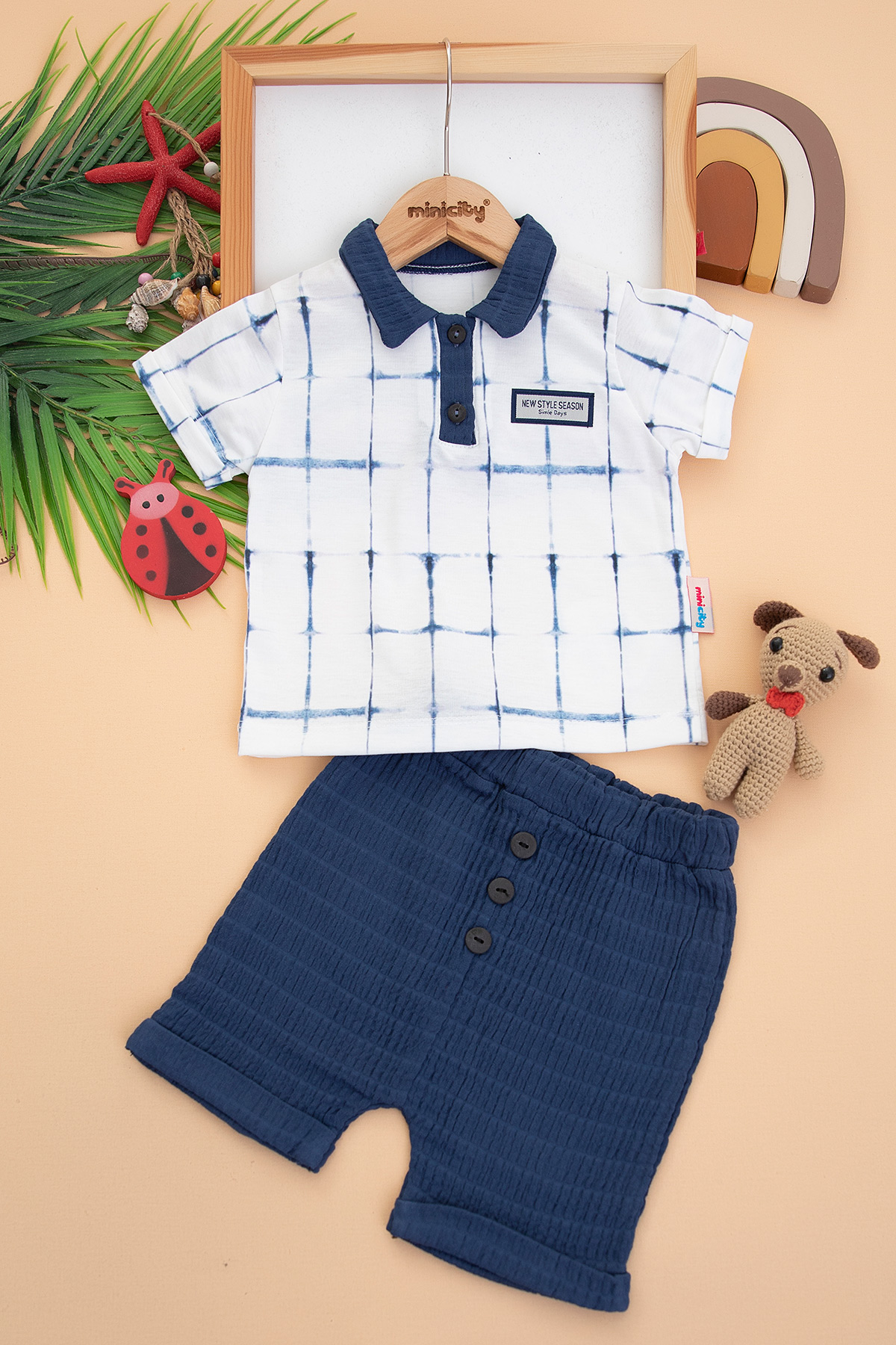 Erkek Çocuk Müslin Çizgili Şortlu Takım - 0464 (1-4 Yaş)