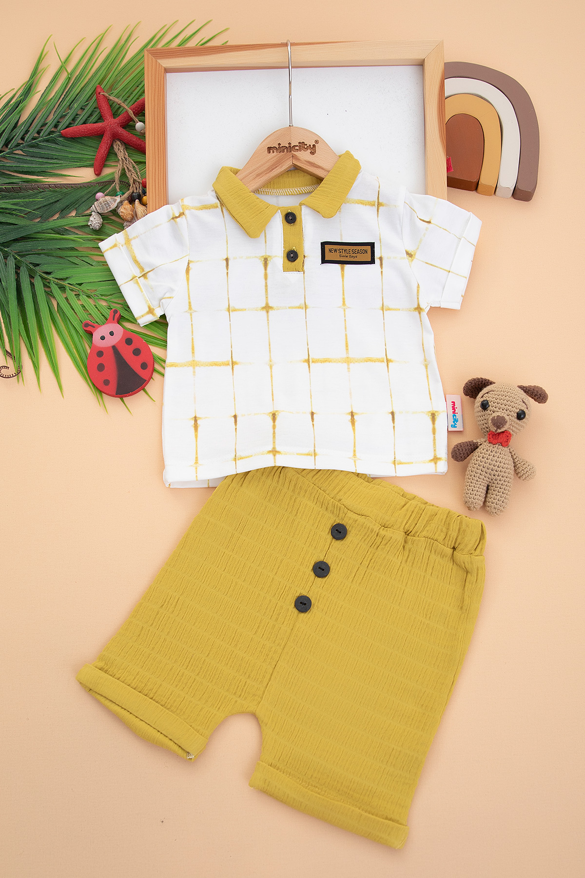 Erkek Çocuk Müslin Çizgili Şortlu Takım - 0464 (1-4 Yaş)