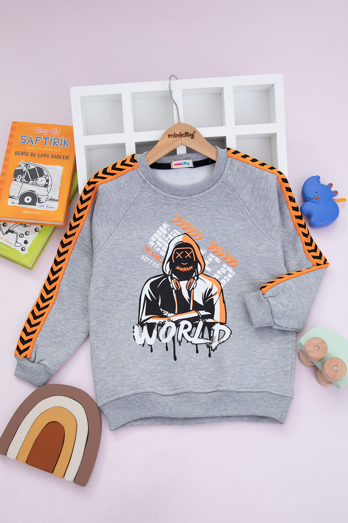 Erkek Çocuk Nakışlı Baskılı Üçip Sweat