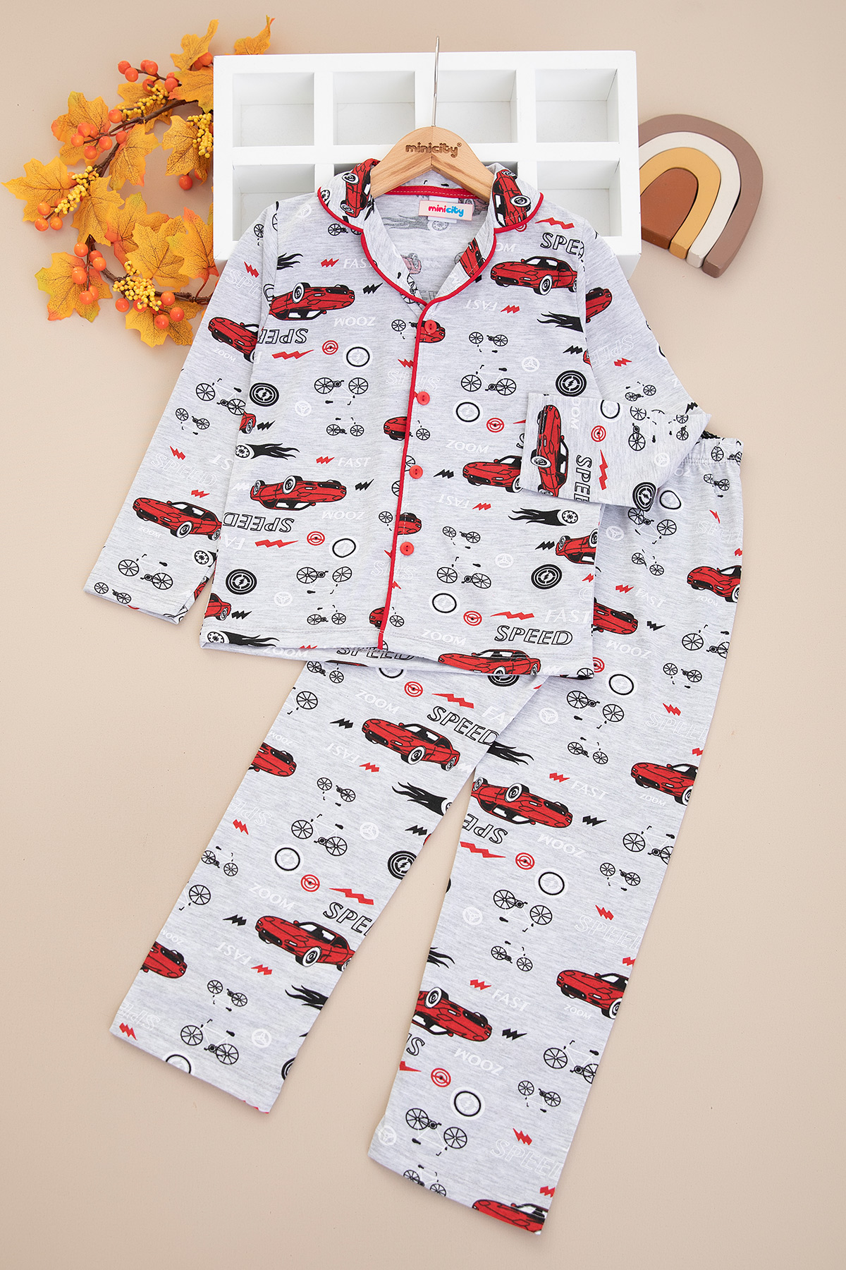 Erkek Çocuk Önden Düğmeli Pijama Takım (4-12 Yaş)