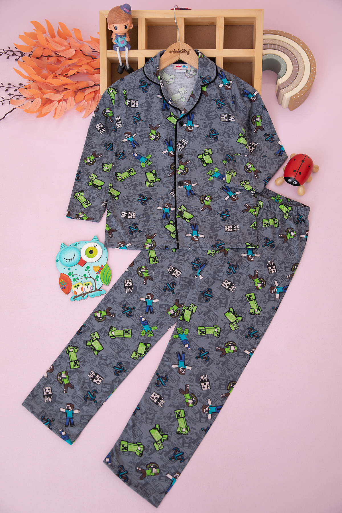 Erkek Çocuk Önden Düğmeli Pijama Takım (4-12 Yaş)