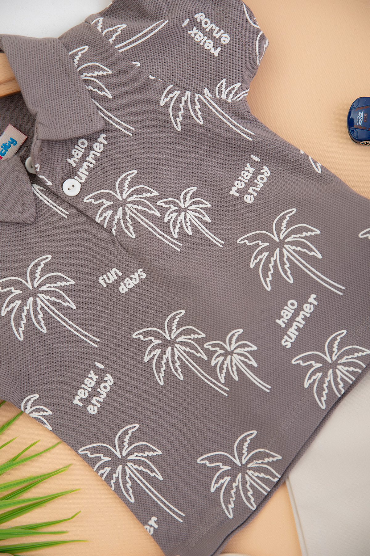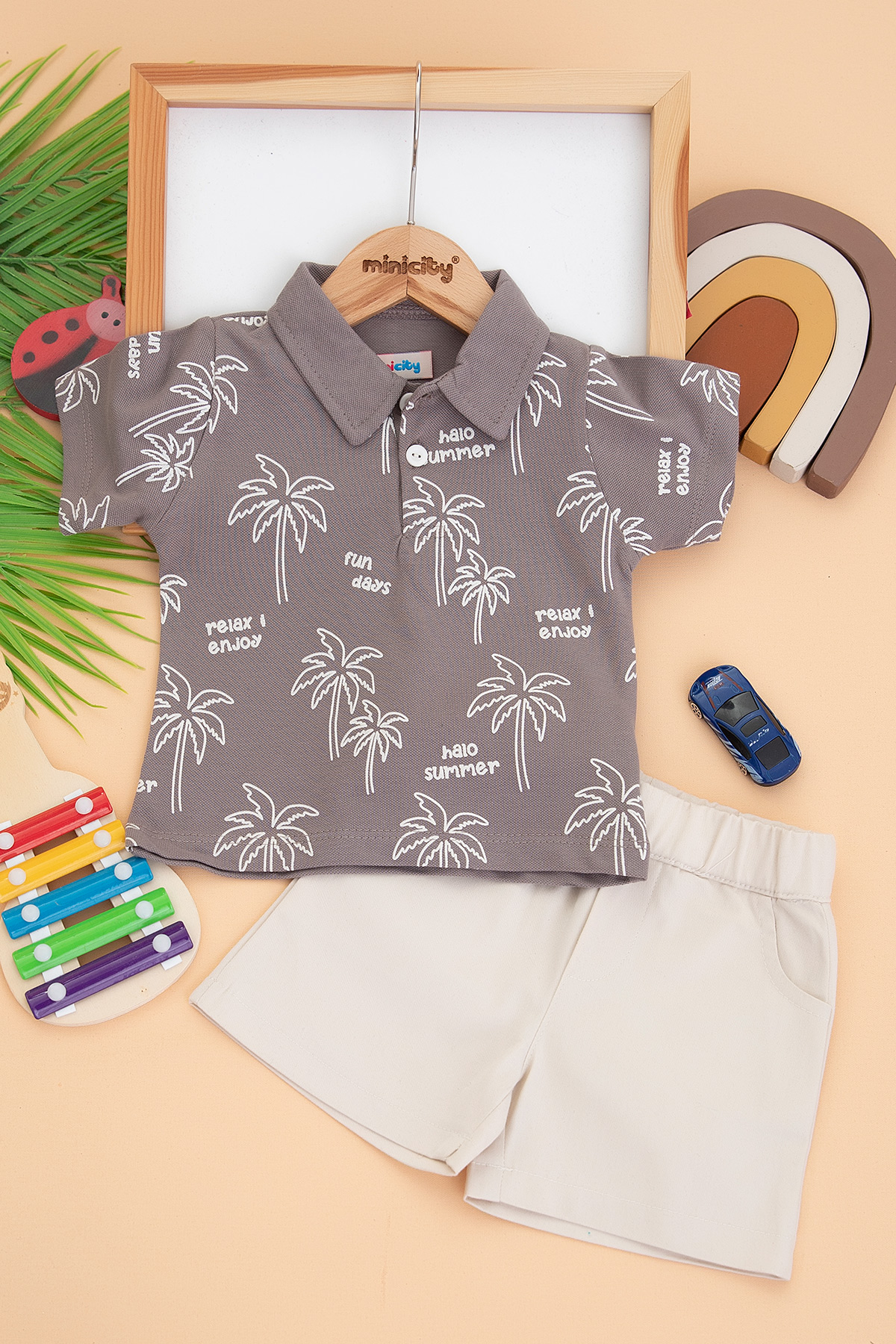 Erkek Çocuk Palmiye Baskılı Kot Şortlu Takım - 24185 (3-6 Yaş)