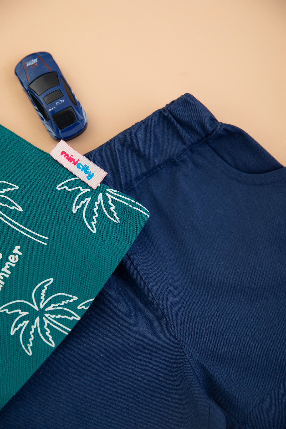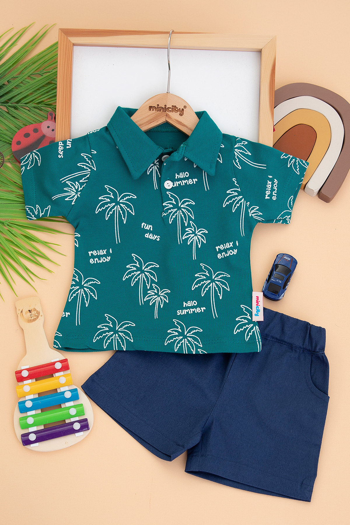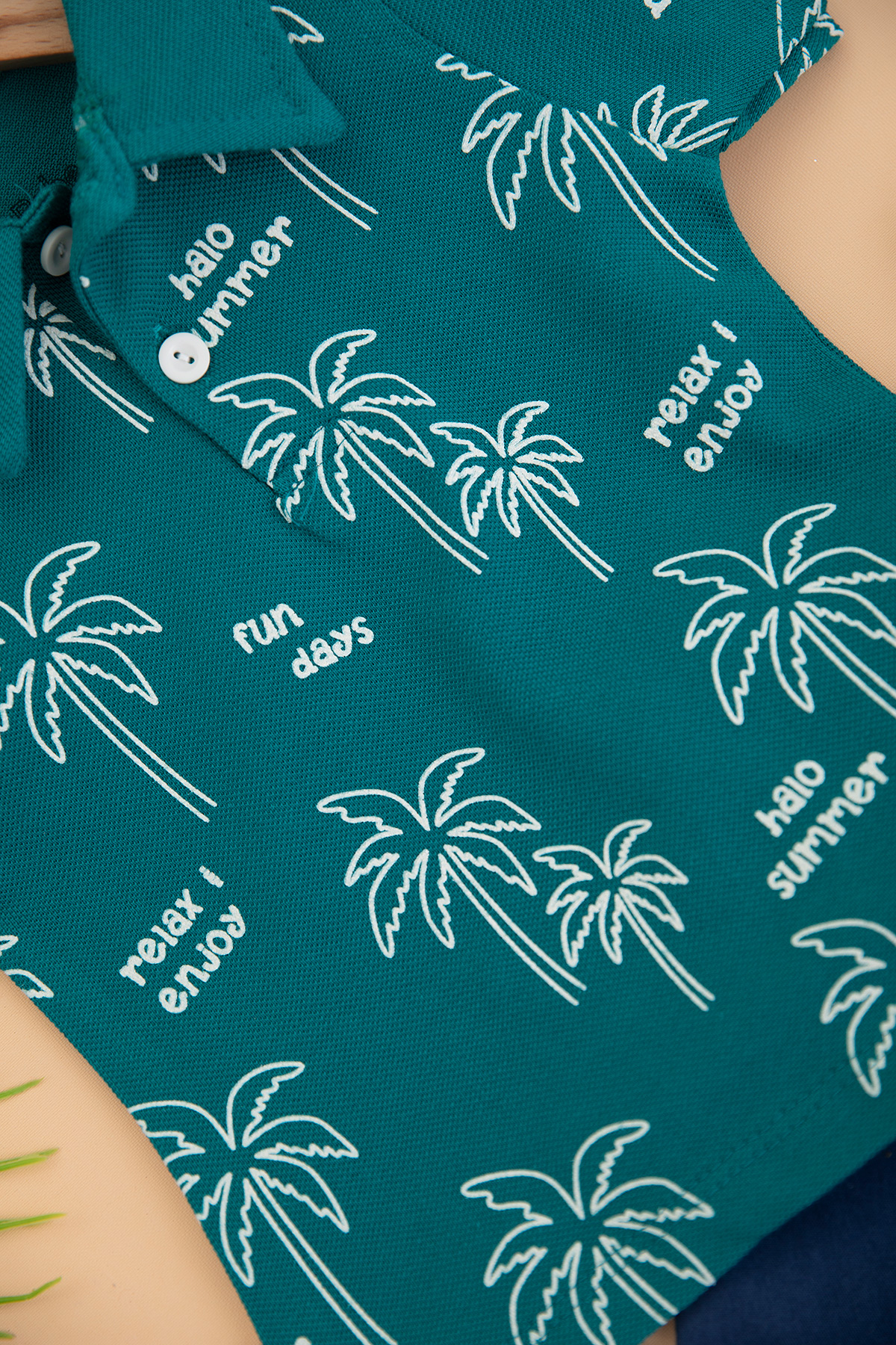 Erkek Çocuk Palmiye Baskılı Kot Şortlu Takım - 24185 (3-6 Yaş)