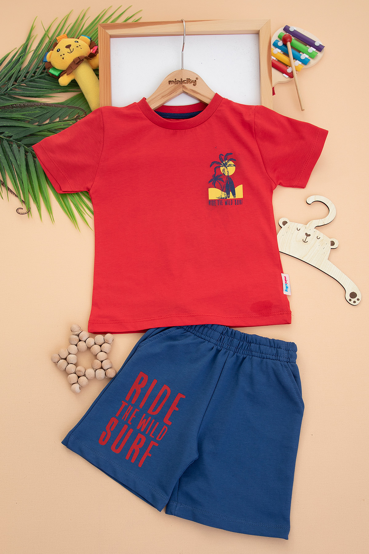 Erkek Çocuk Palmiye Baskılı Şortlu Takım - 24190 (7-10 Yaş)