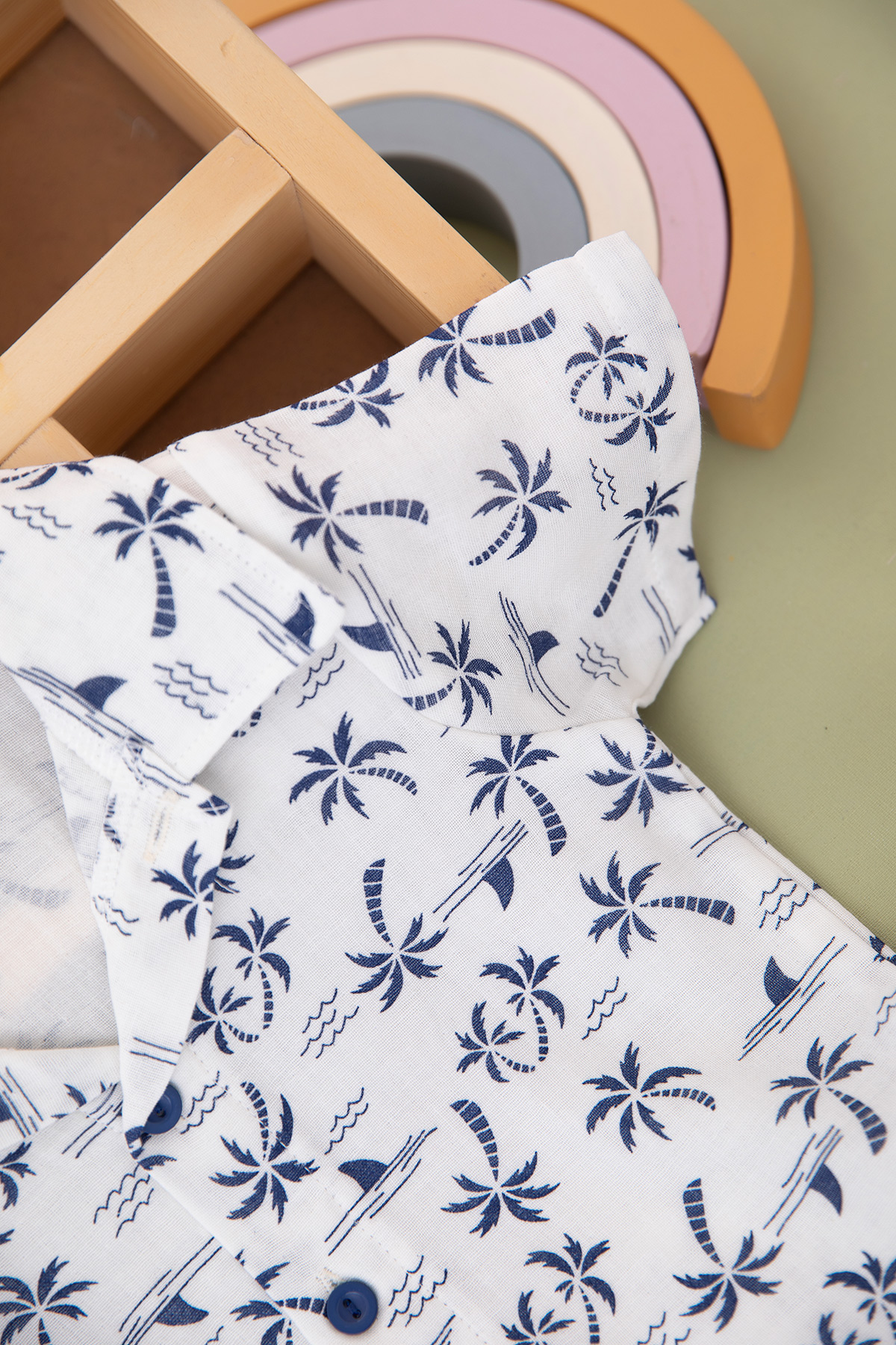 Erkek Çocuk Palmiye Baskılı Şortlu Takım - 24307 (7-10 Yaş)