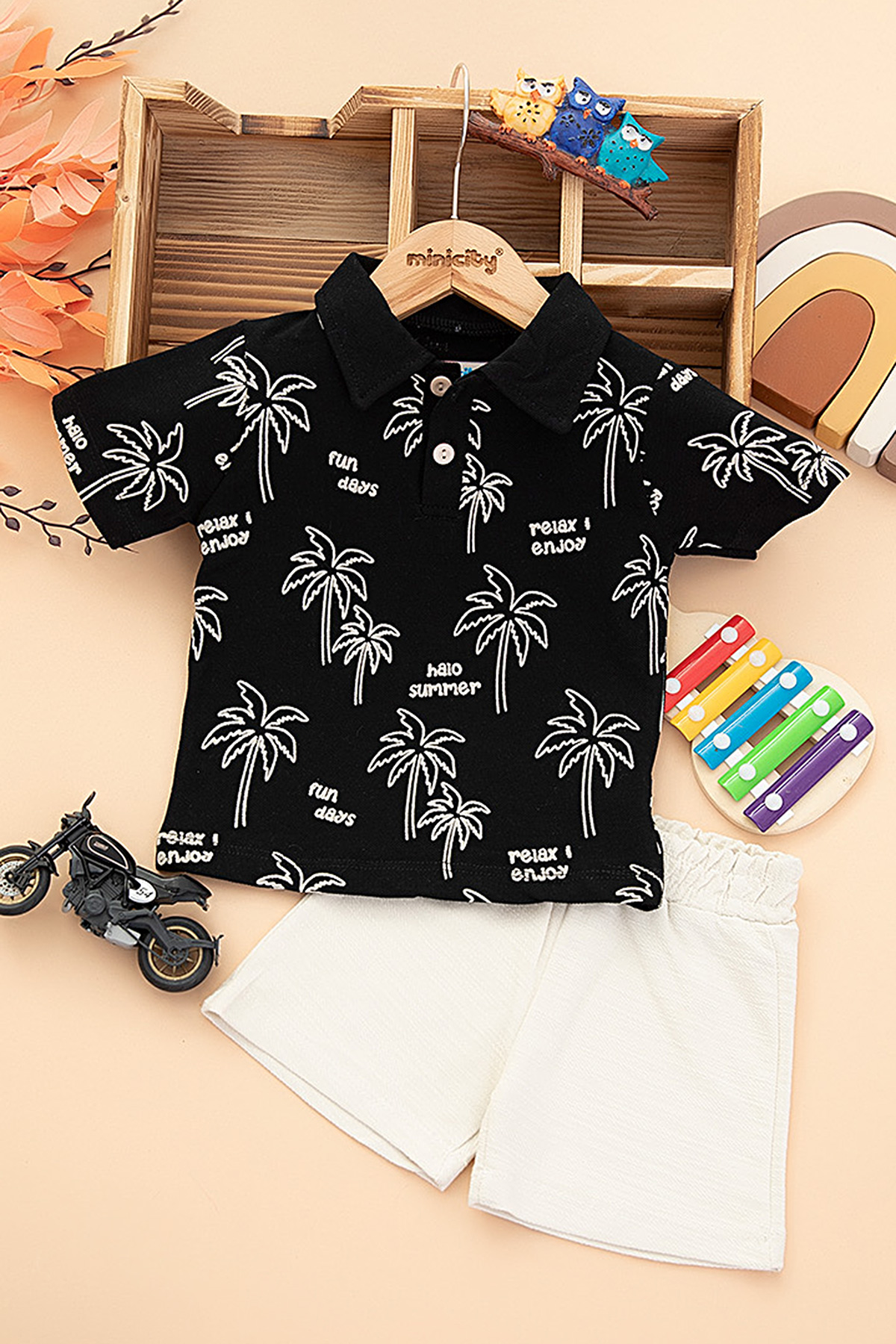 Erkek Çocuk Palmiye Baskılı Şortlu Takım - 25216 (7-10 Yaş)