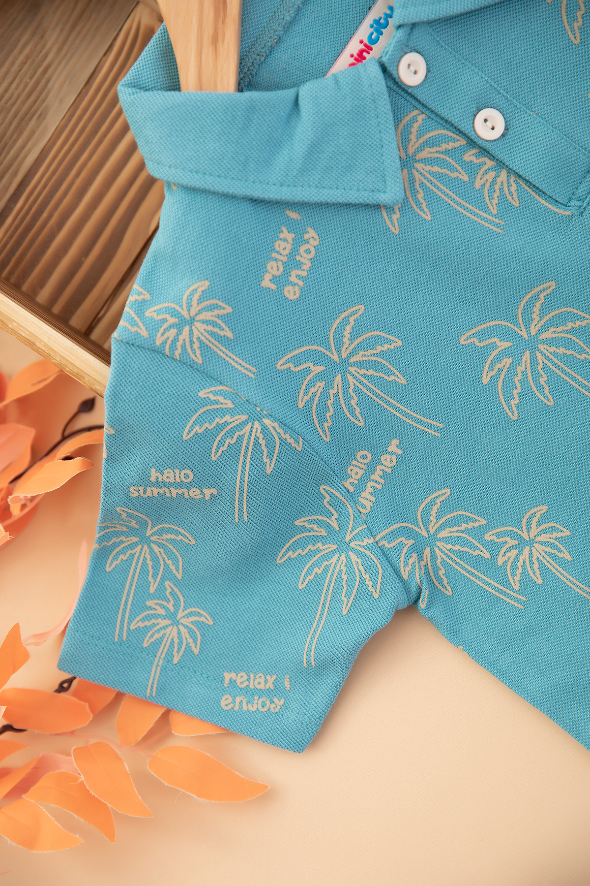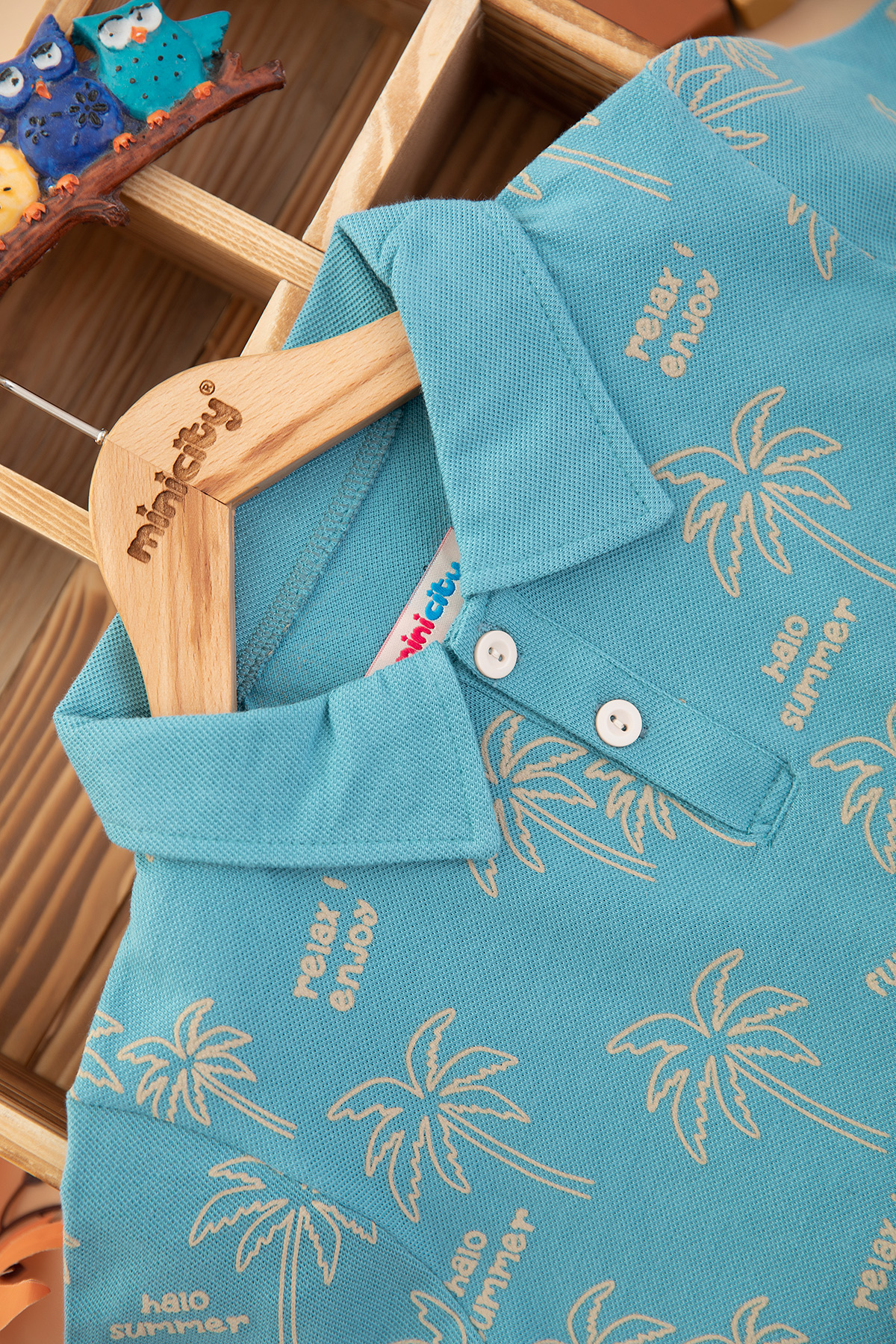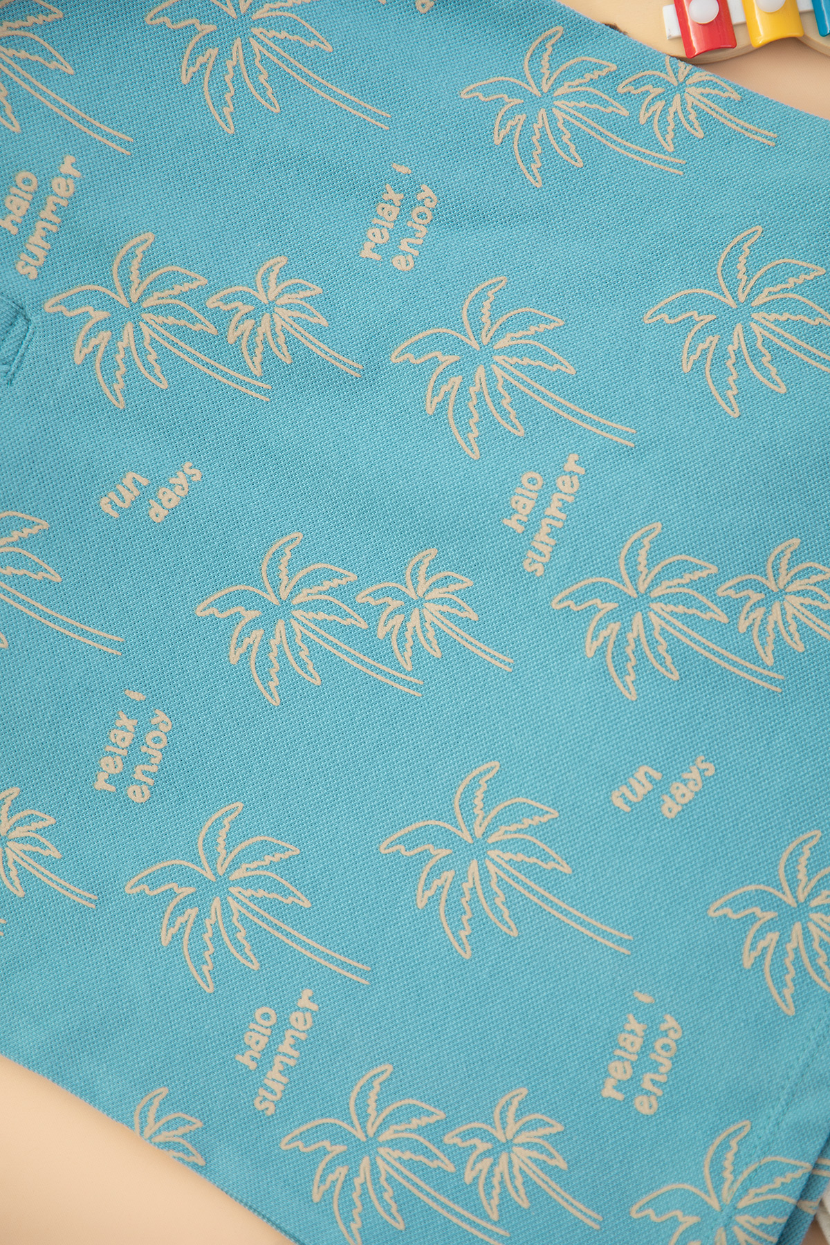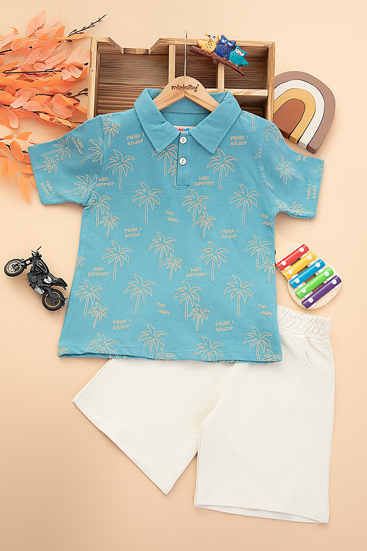 Erkek Çocuk Palmiye Baskılı Şortlu Takım - 25216 (7-10 Yaş)