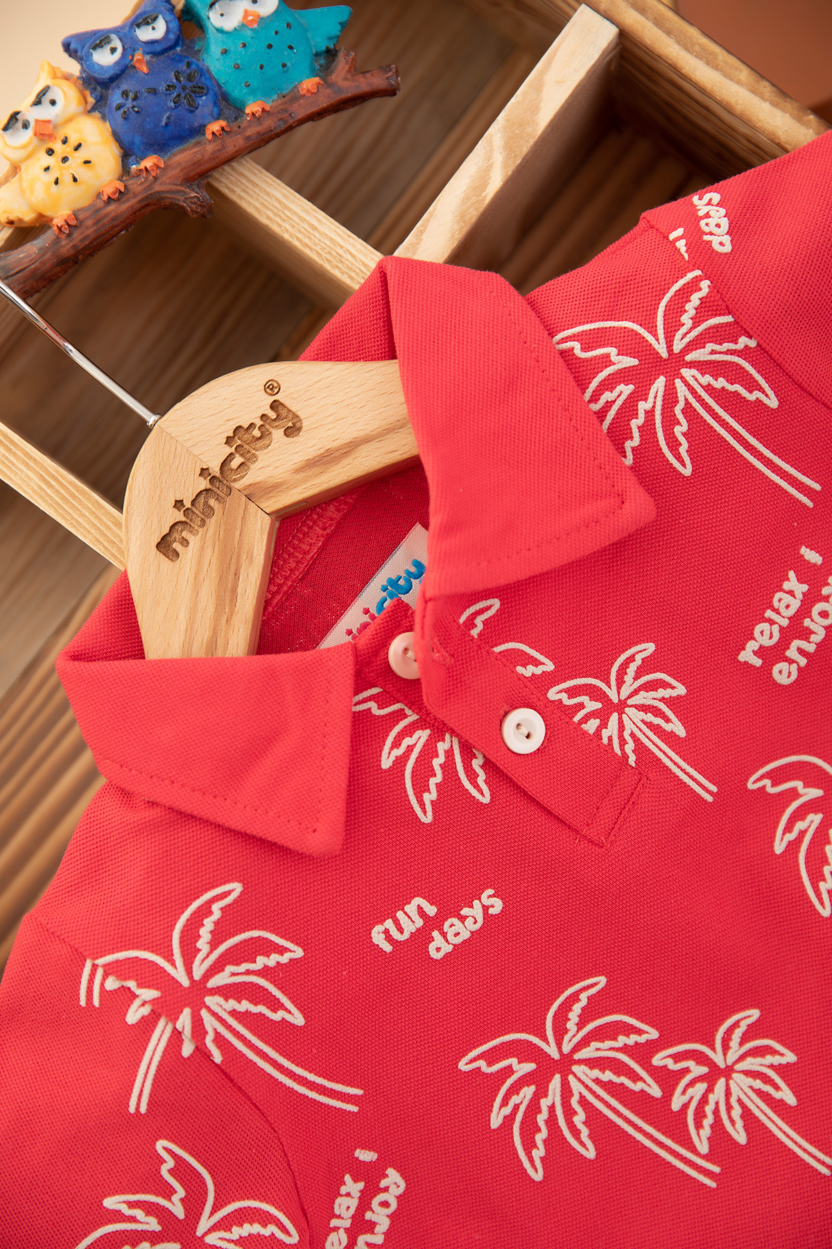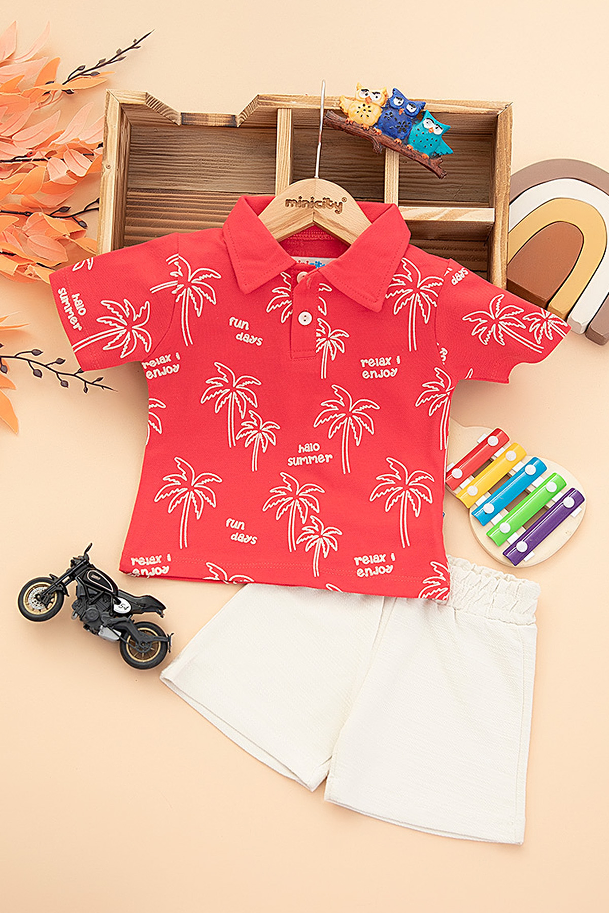Erkek Çocuk Palmiye Baskılı Şortlu Takım - 25216 (7-10 Yaş)