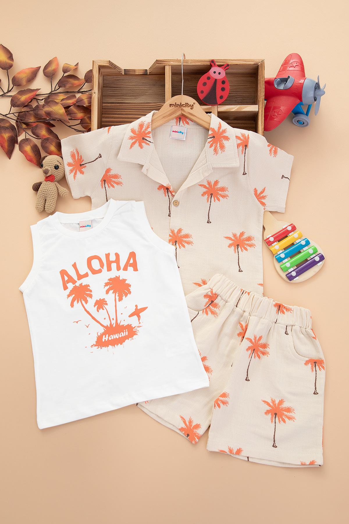 Erkek Çocuk Palmiye Baskılı Şortlu Takım - 25452 (3-6 Yaş)