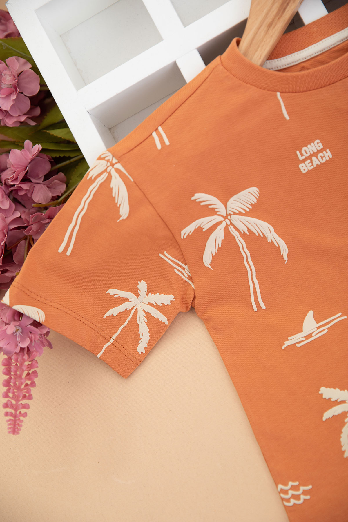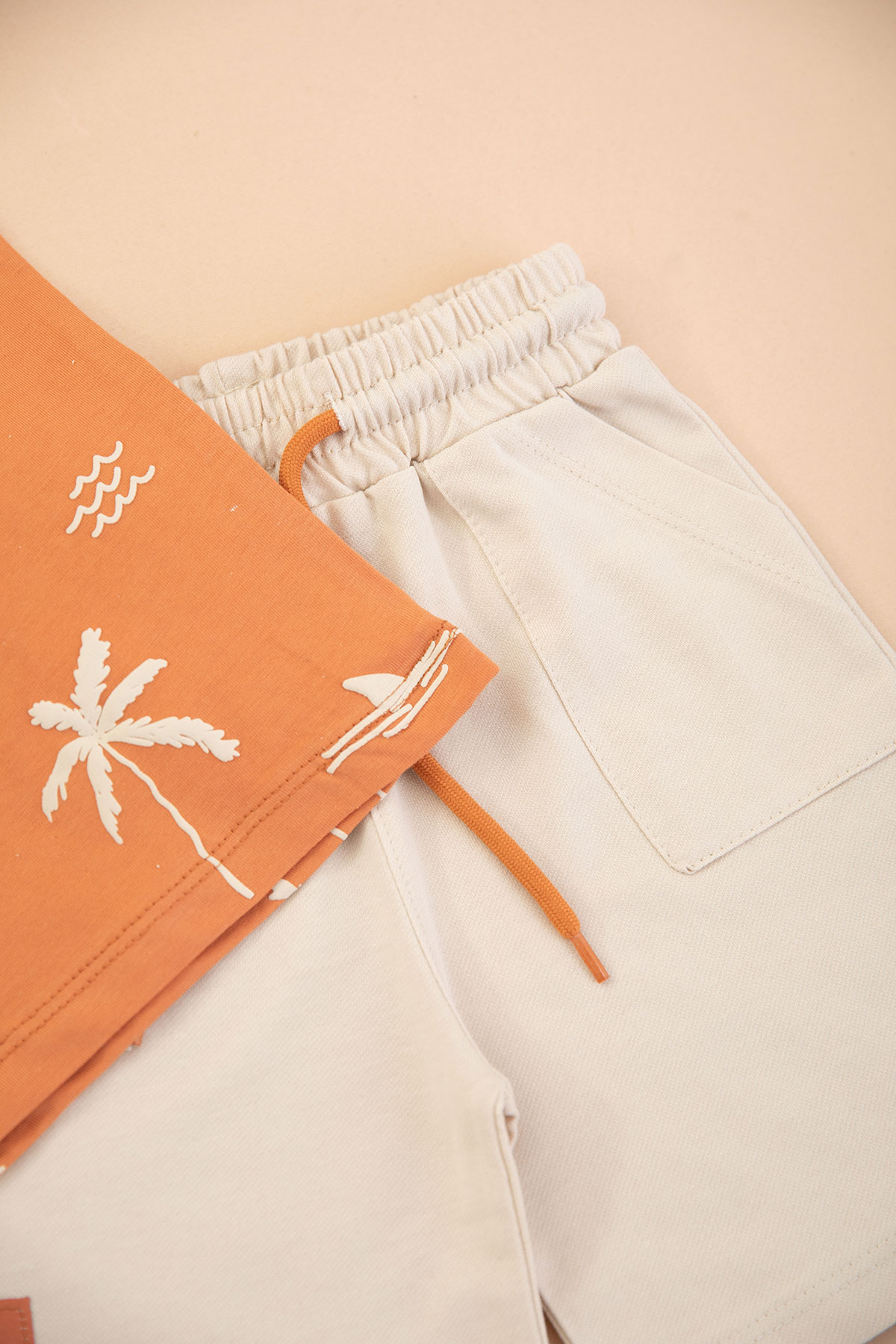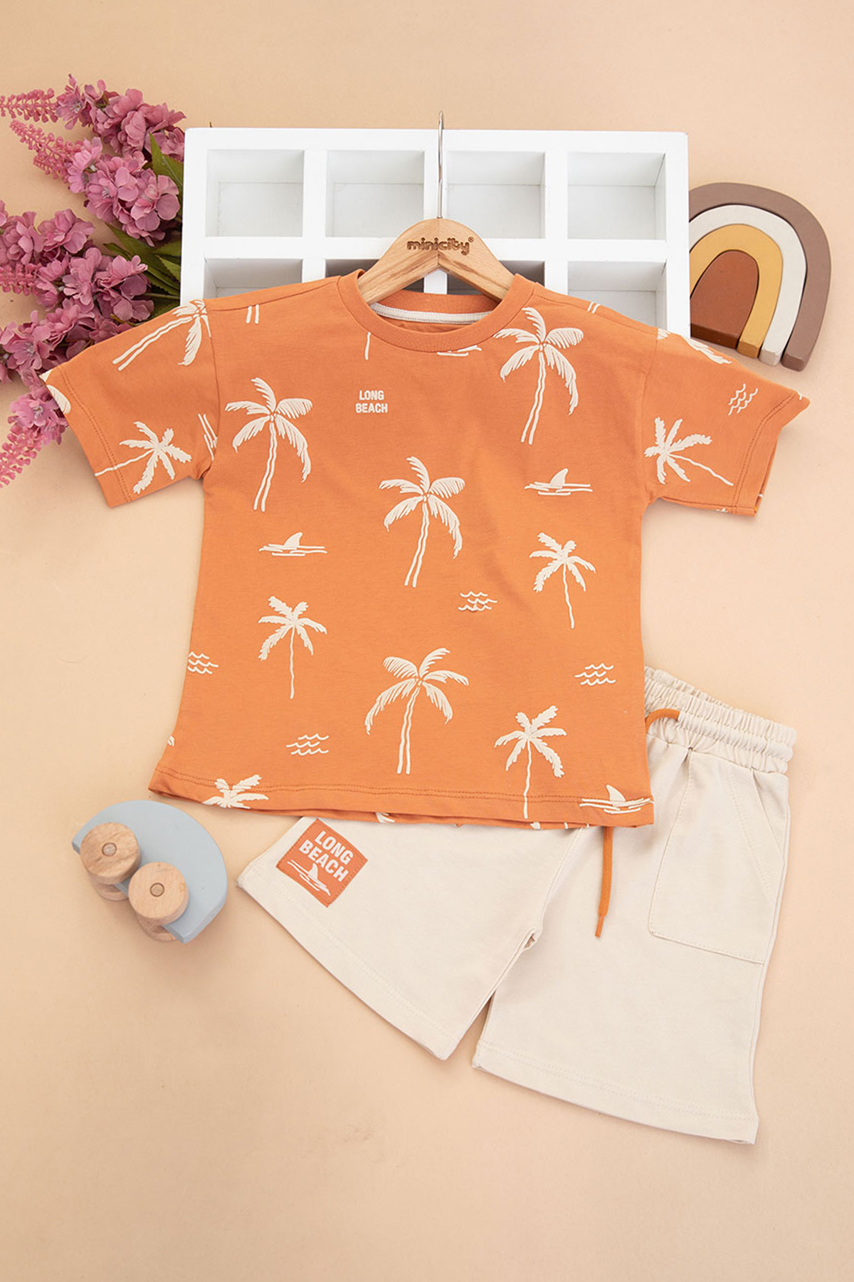 Erkek Çocuk Palmiye Baskılı Şortlu Takım - 26325 (3-6 Yaş)