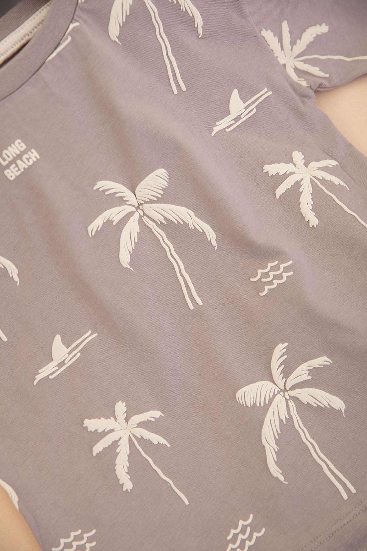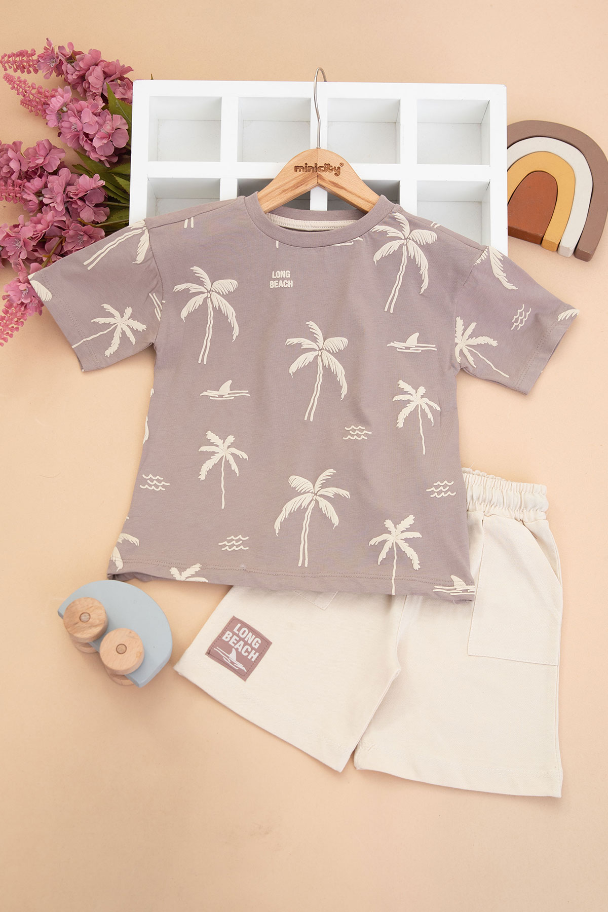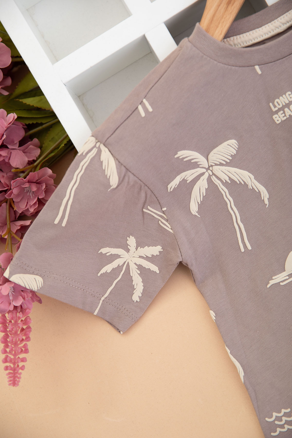 Erkek Çocuk Palmiye Baskılı Şortlu Takım - 26325 (3-6 Yaş)