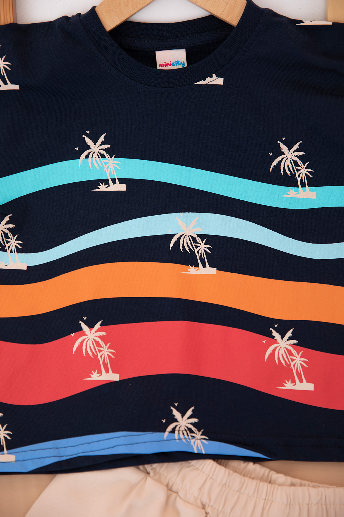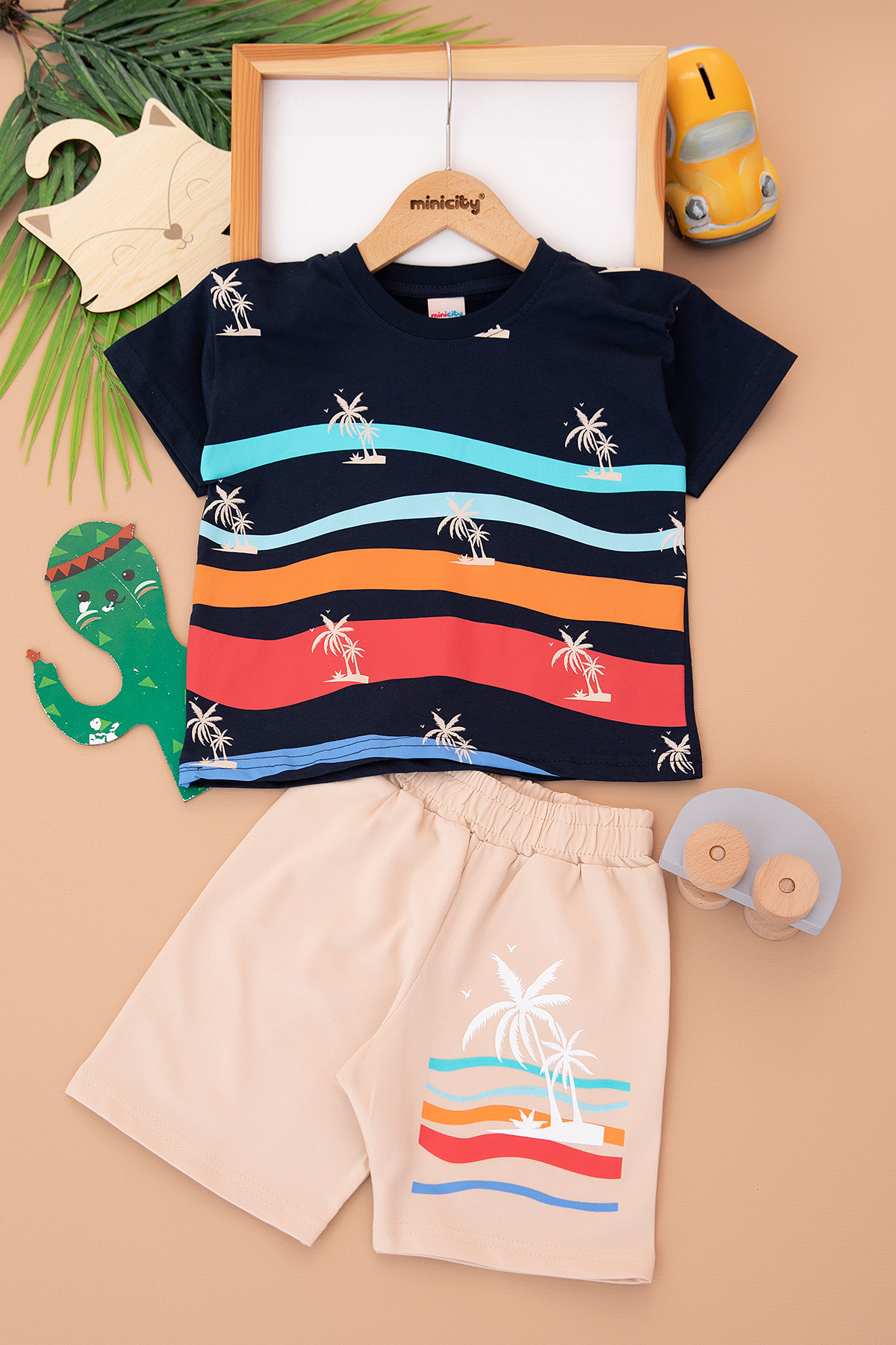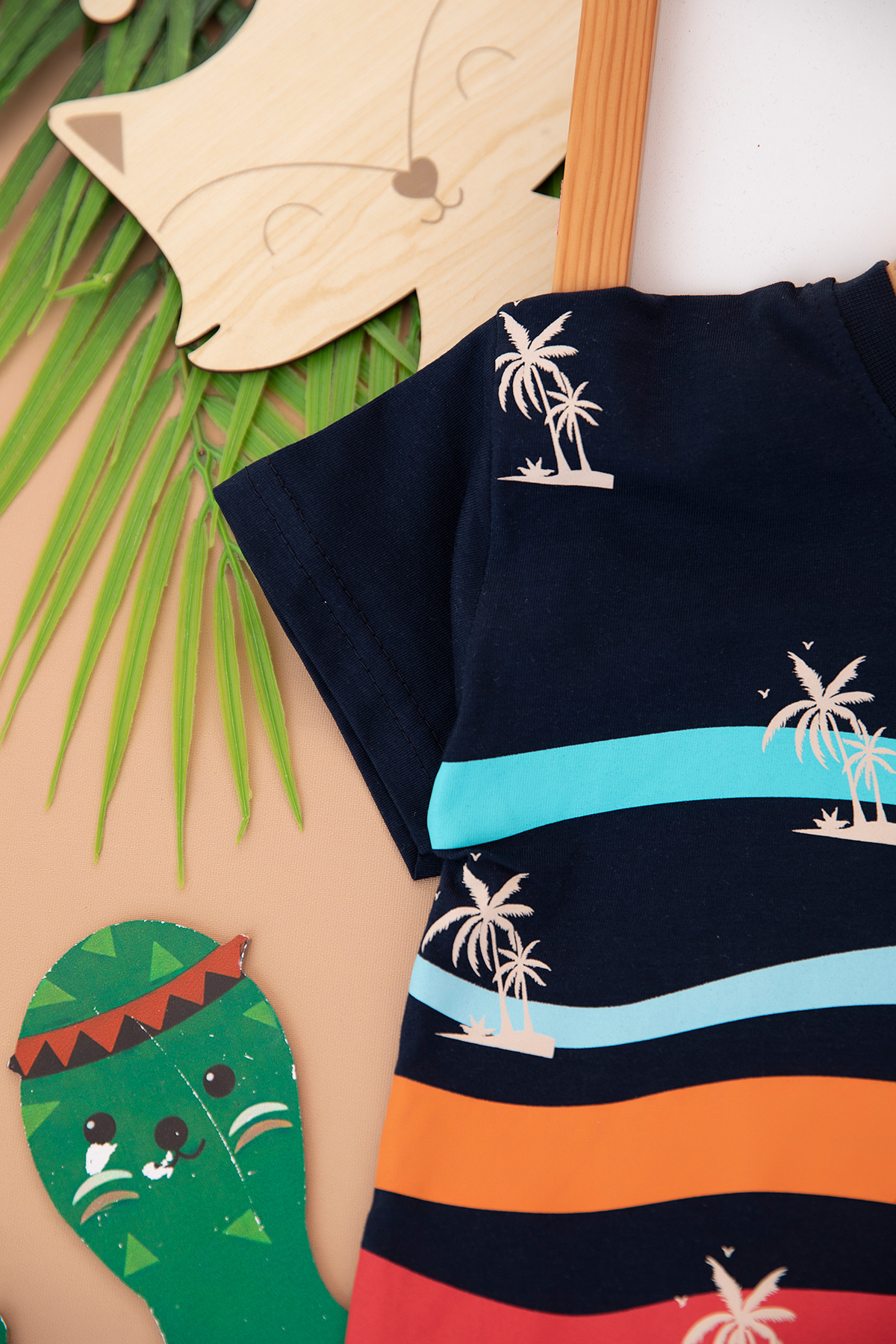 Erkek Çocuk Palmiye Baskılı Şortlu Takım (4-10 Yaş)