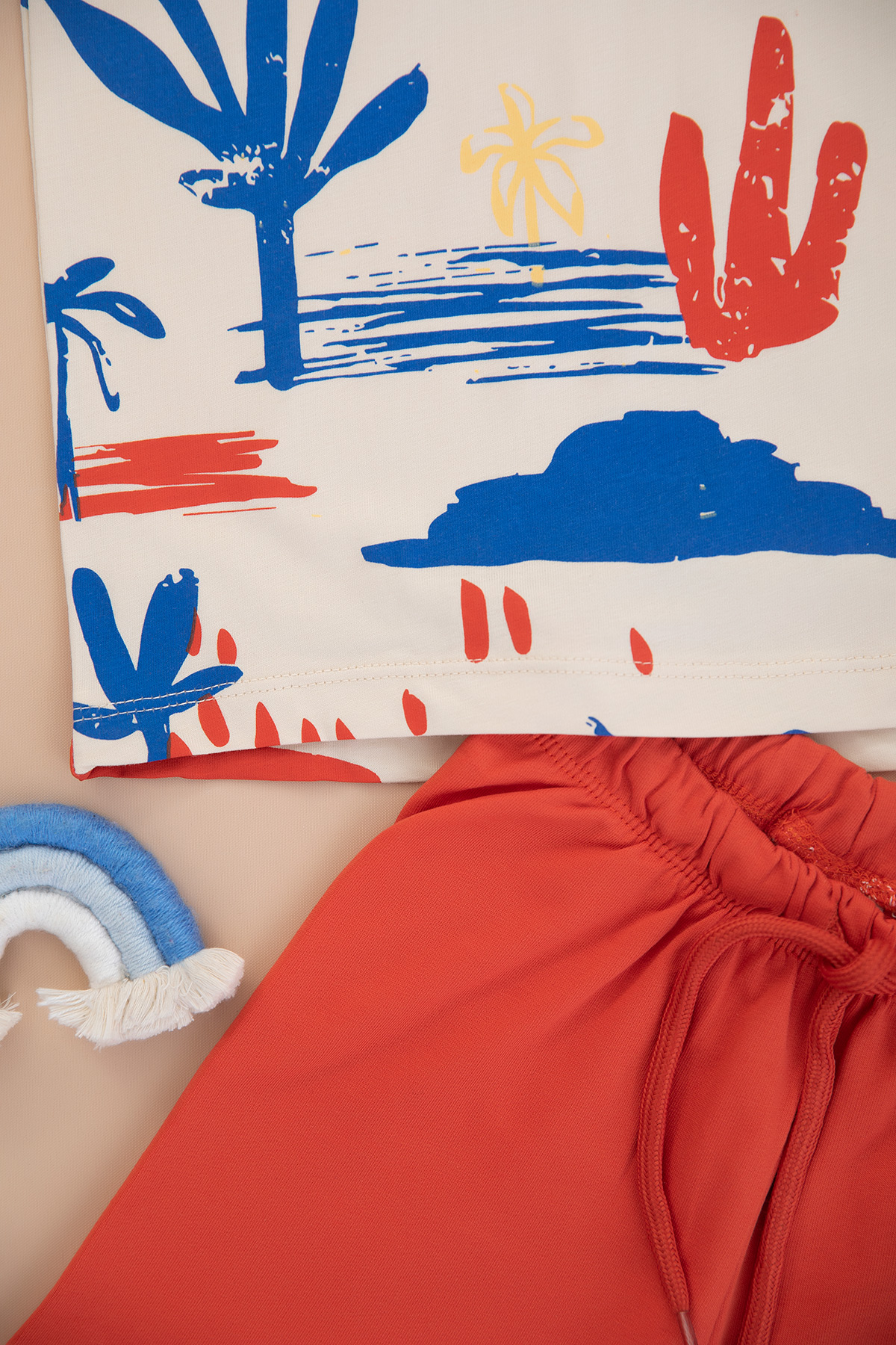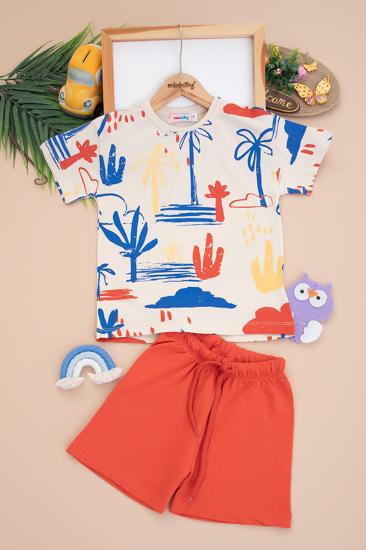 Erkek Çocuk Palmiye Baskılı Şortlu Takım - 7838 (2-8 Yaş)