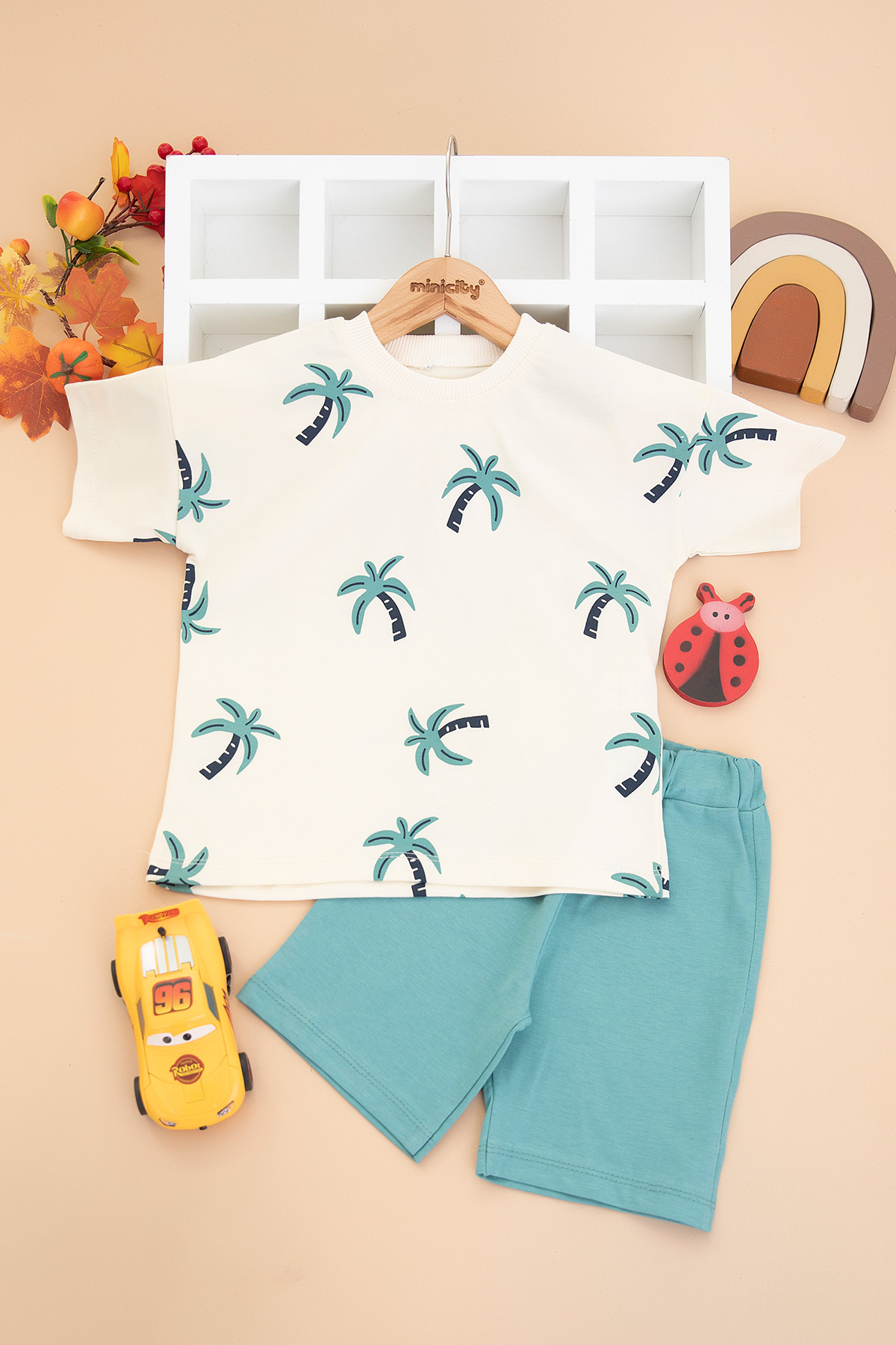 Erkek Çocuk Palmiye Baskılı Şortlu Takım - 874 (2-5 Yaş)