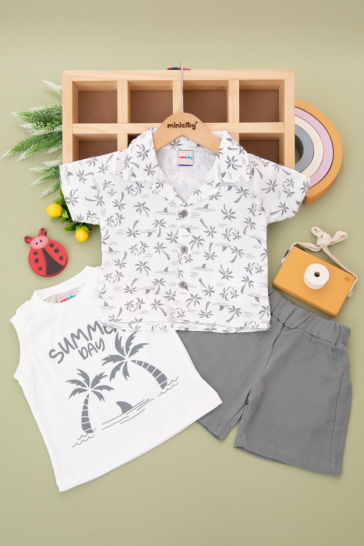 Erkek Çocuk Palmiye Desenli Şortlu Takım - 24303 (3-6 Yaş)