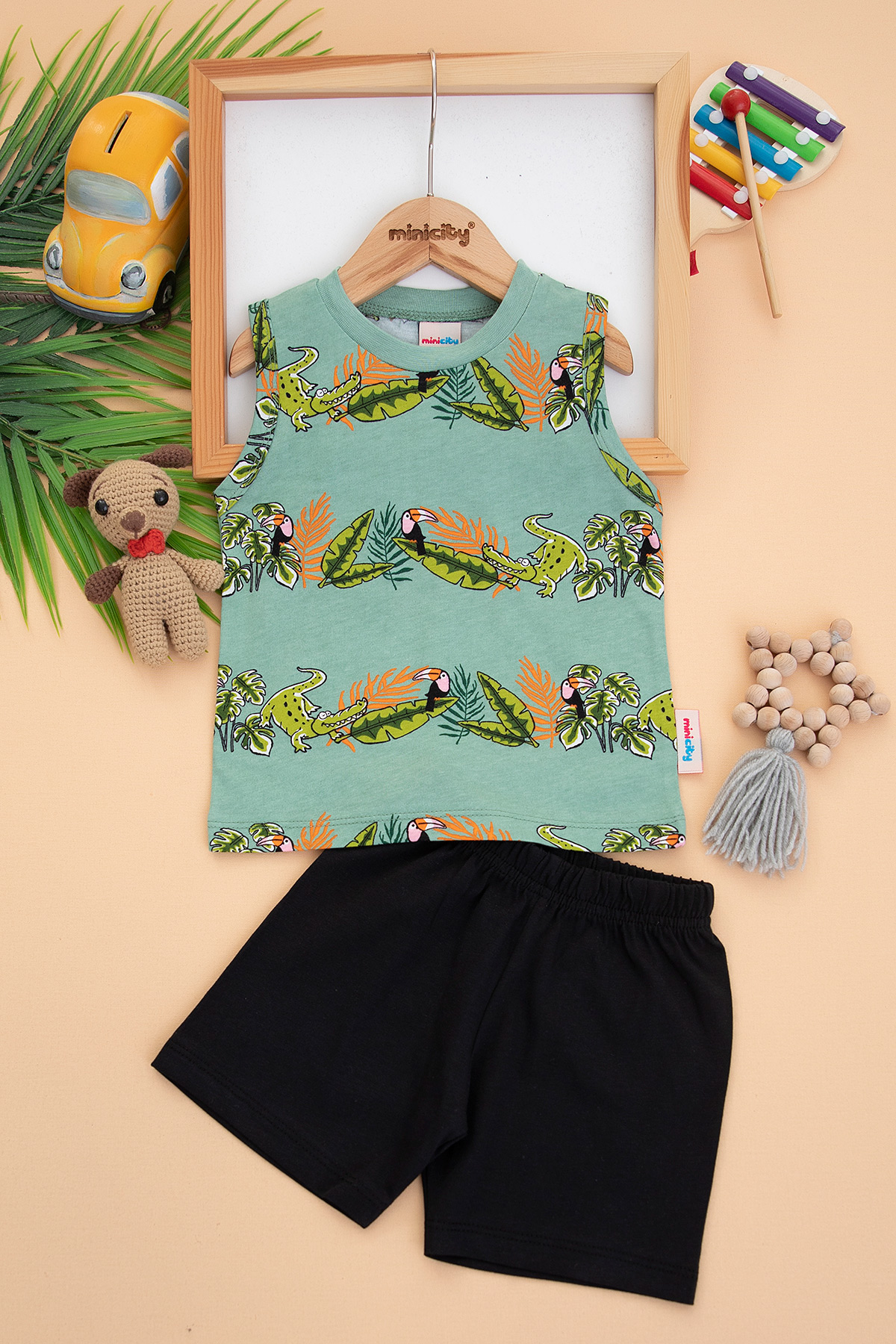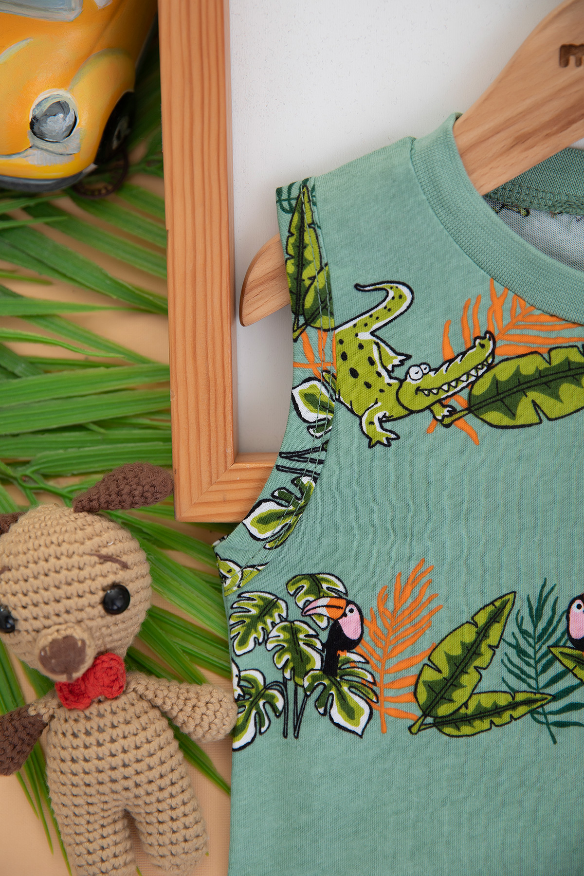 Erkek Çocuk Papağan Baskılı Sıfır Kol Takım - 24367 (3-6 Yaş)