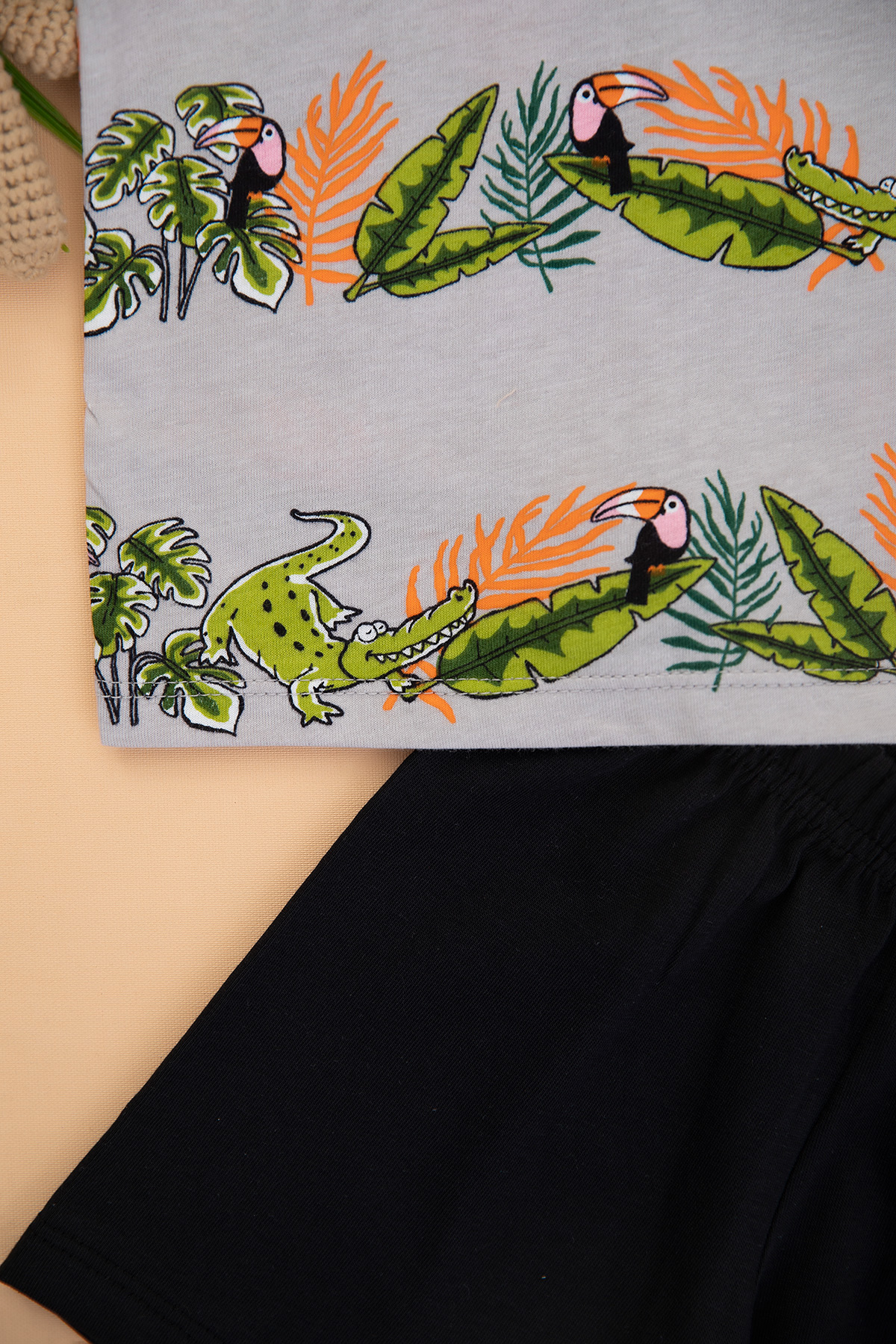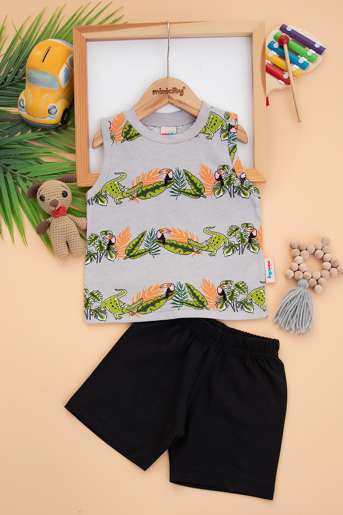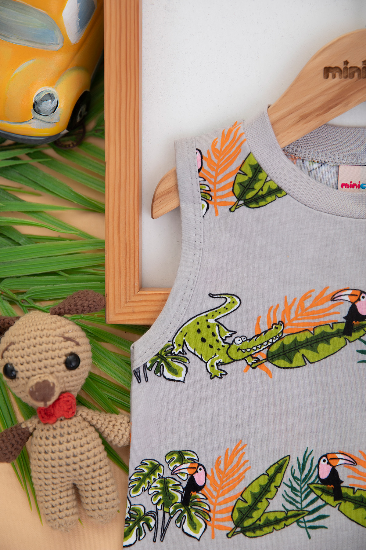 Erkek Çocuk Papağan Baskılı Sıfır Kol Takım - 24367 (3-6 Yaş)