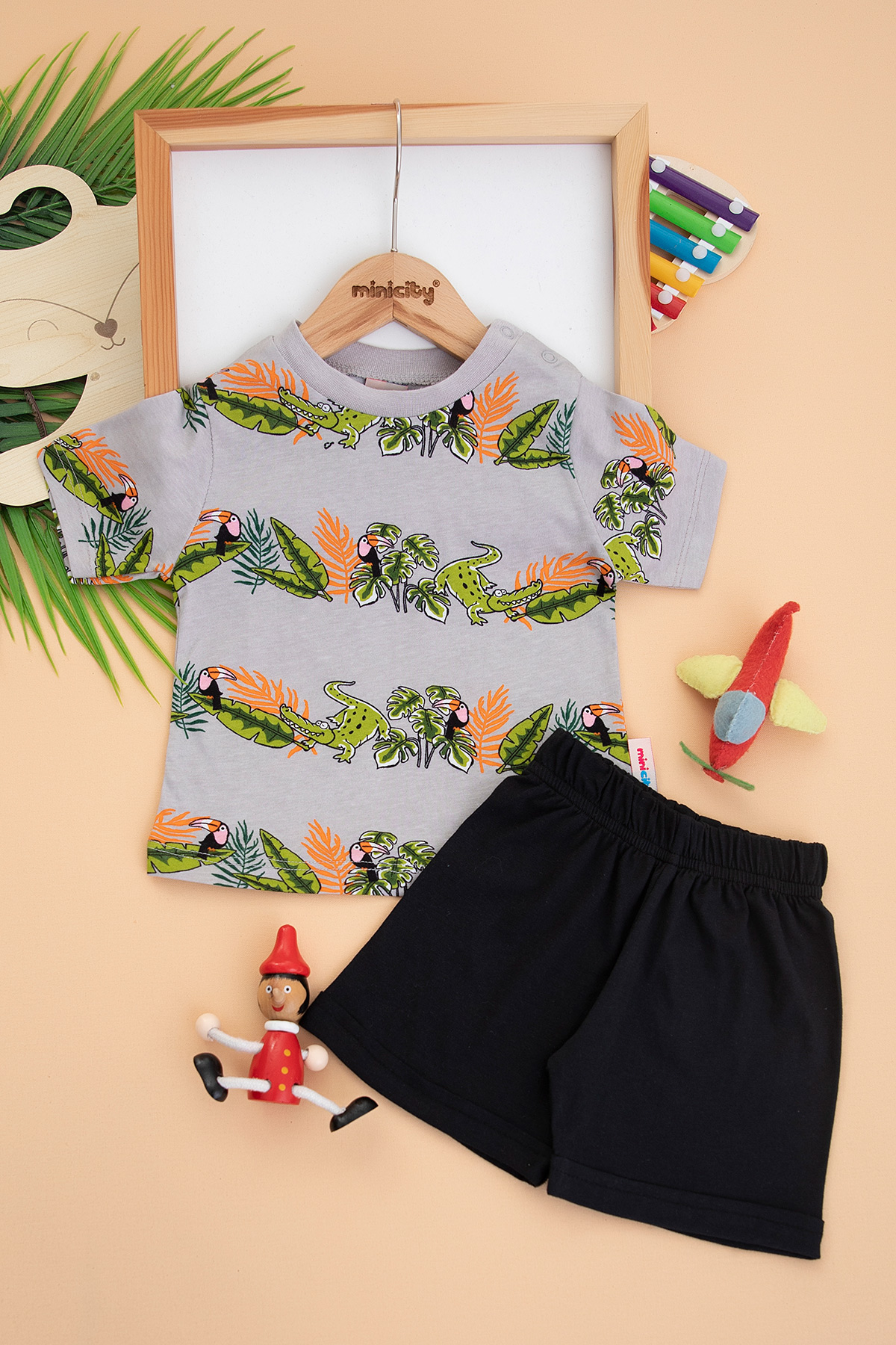 Erkek Çocuk Papağan Baskılı Şortlu Takım - 24353 (7-10 Yaş)