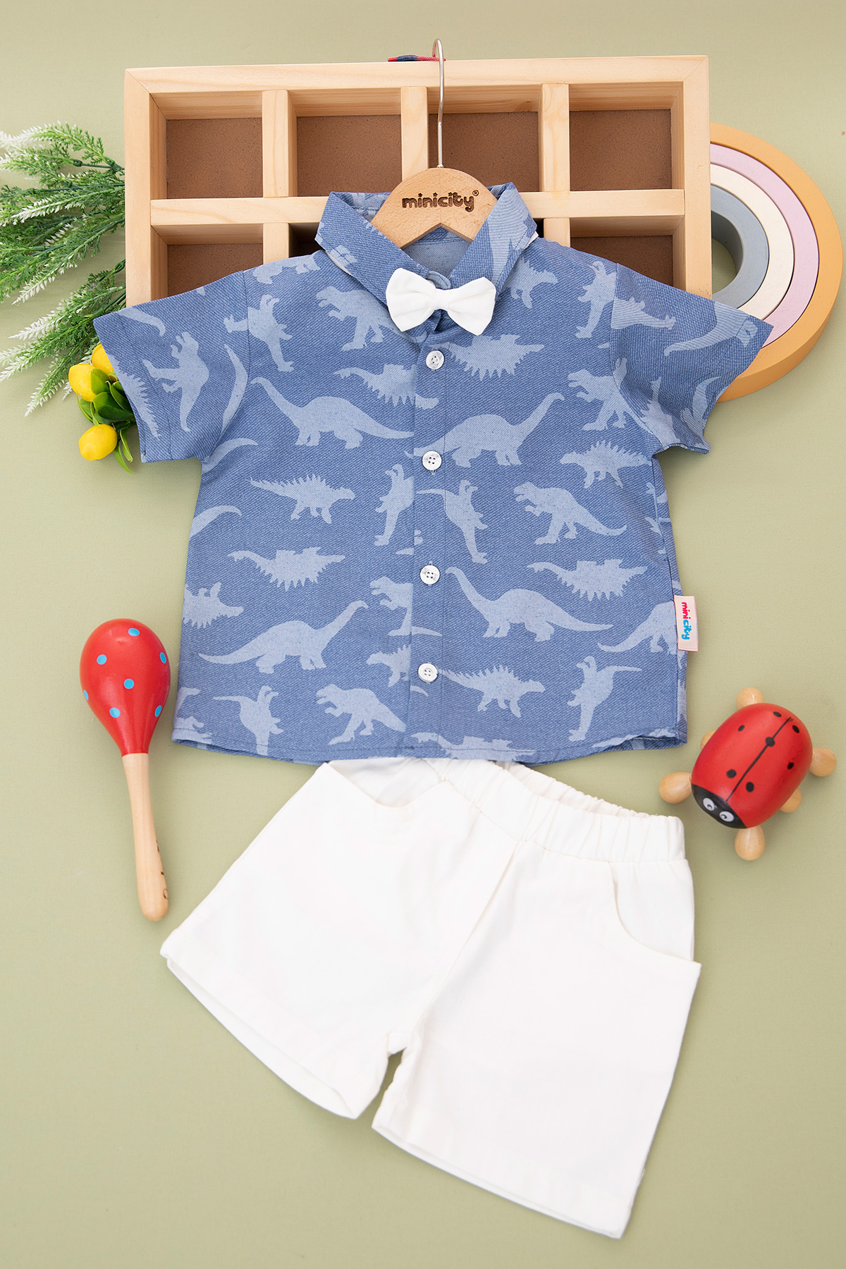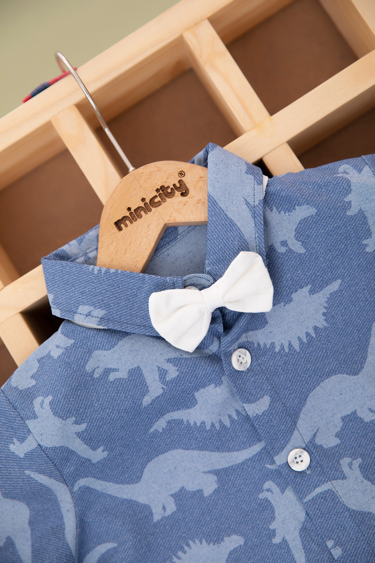 Erkek Çocuk Papyonlu Dino Desenli Takım - 1409 (2-5 Yaş)