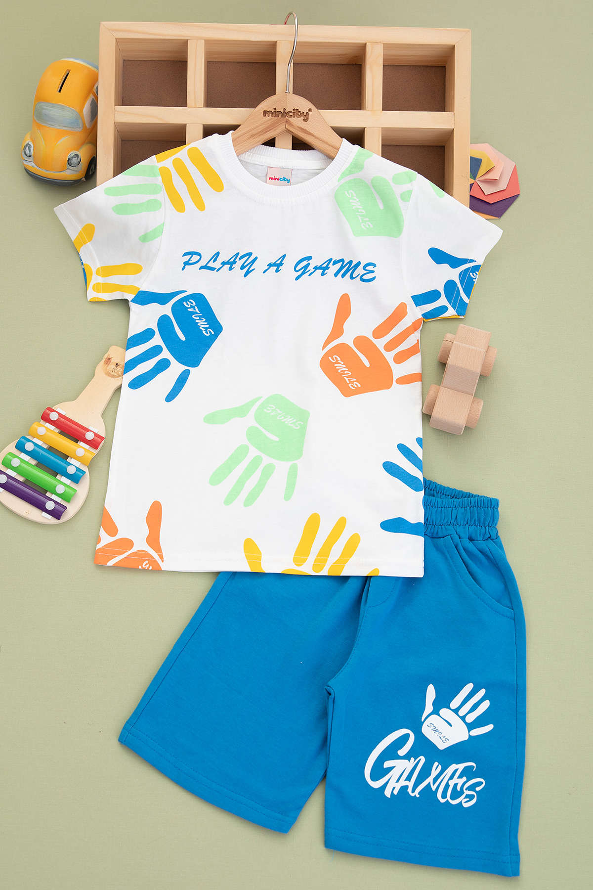 Erkek Çocuk Play A Game Baskılı Şortlu Takım (4-8 Yaş)