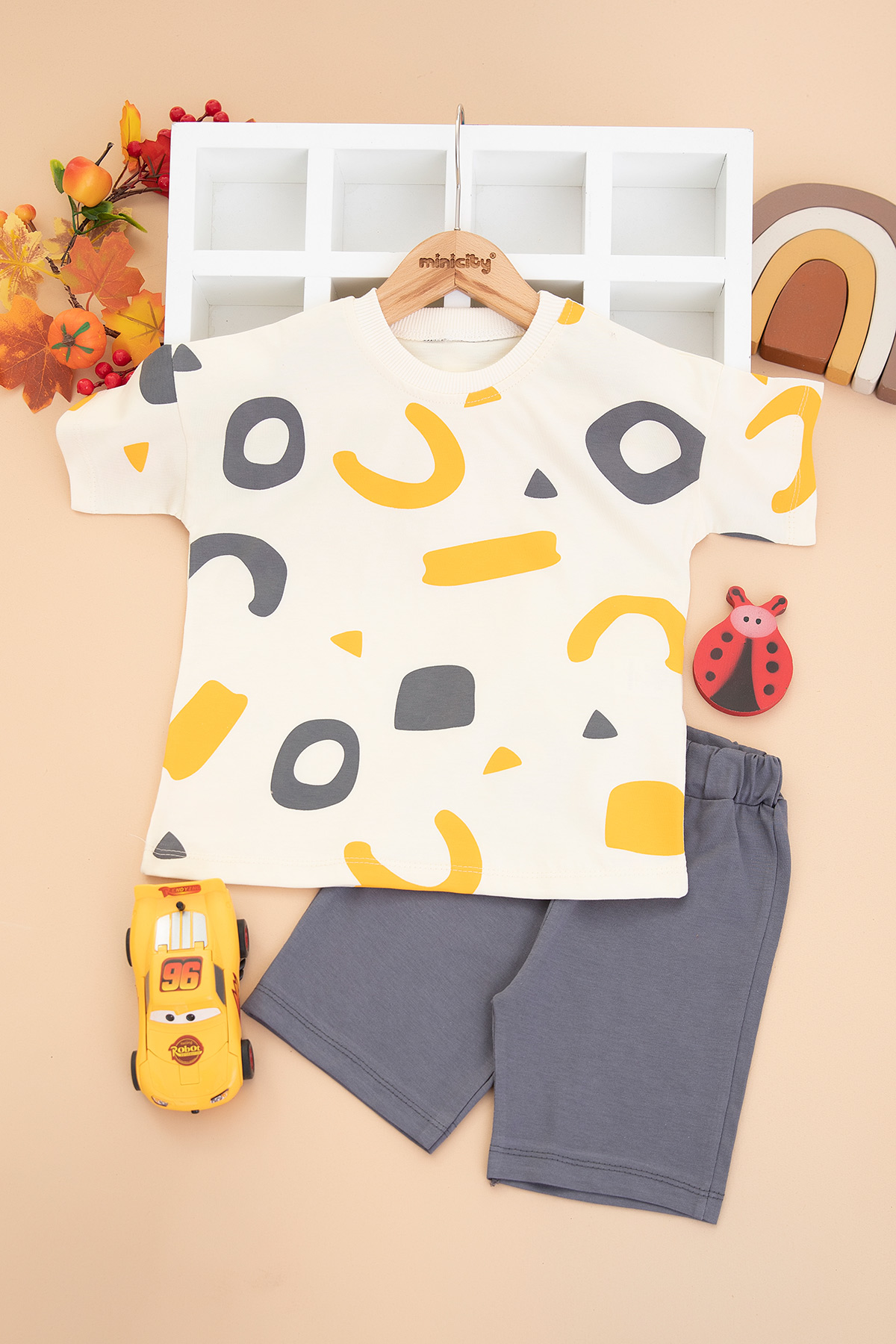 Erkek Çocuk Şekiller Baskılı Şortlu Takım - 872 (2-5 Yaş)