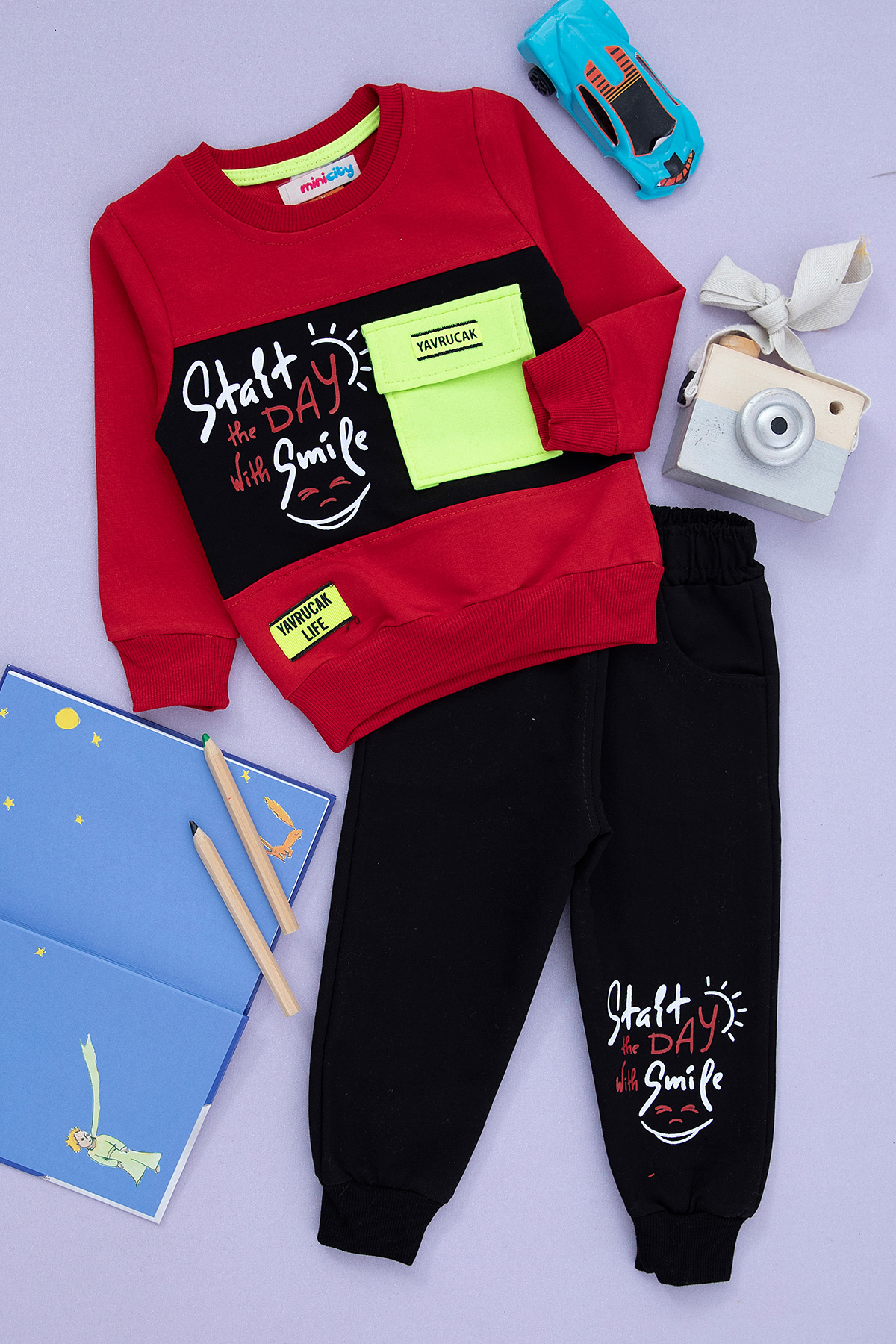 Erkek Çocuk Start Day Smile Baskılı Takım - 726 (1-4 Yaş)