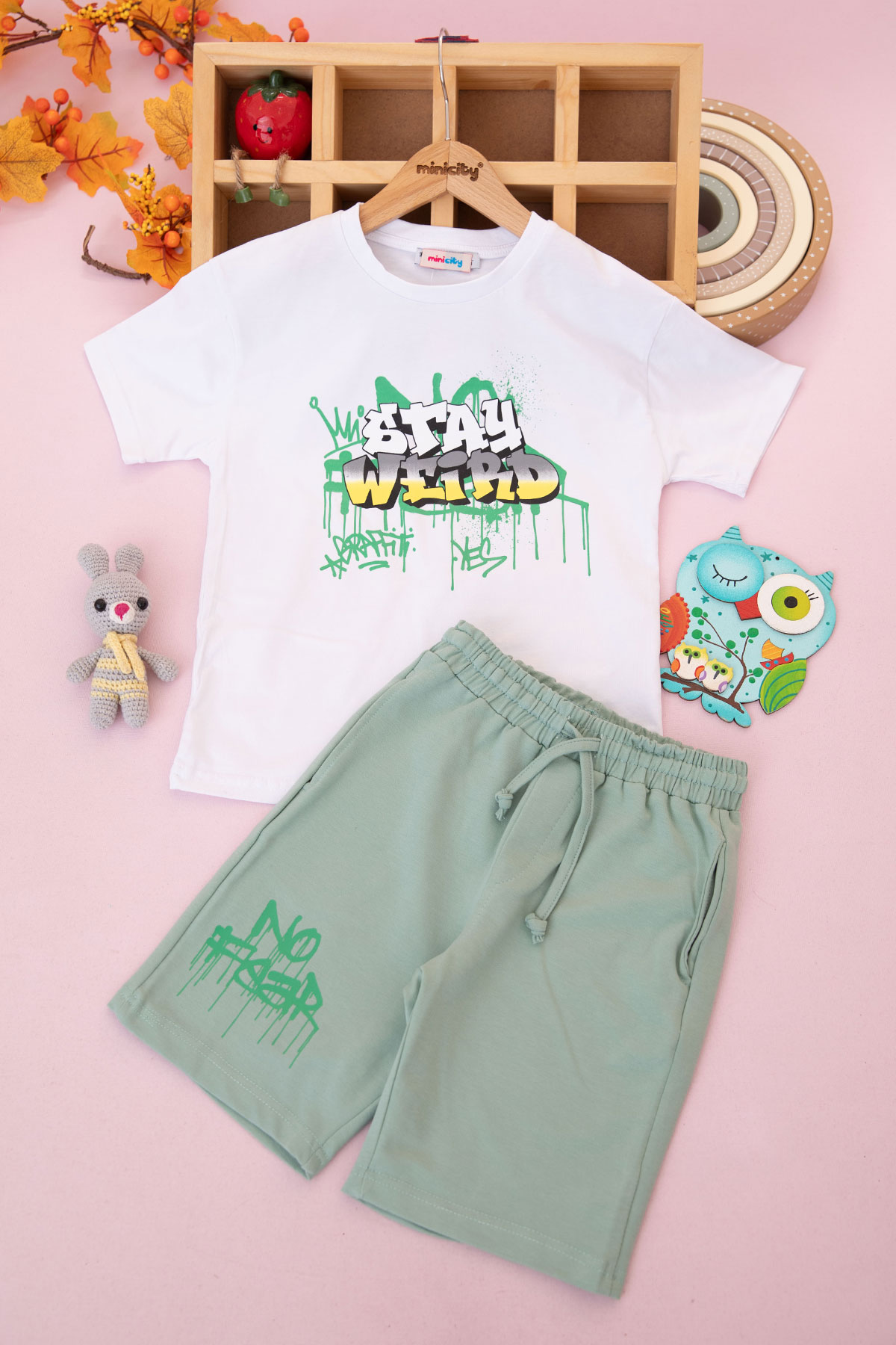 Erkek Çocuk Stay Weird Baskılı Şortlu Takım - 225686 (6-9 Yaş)