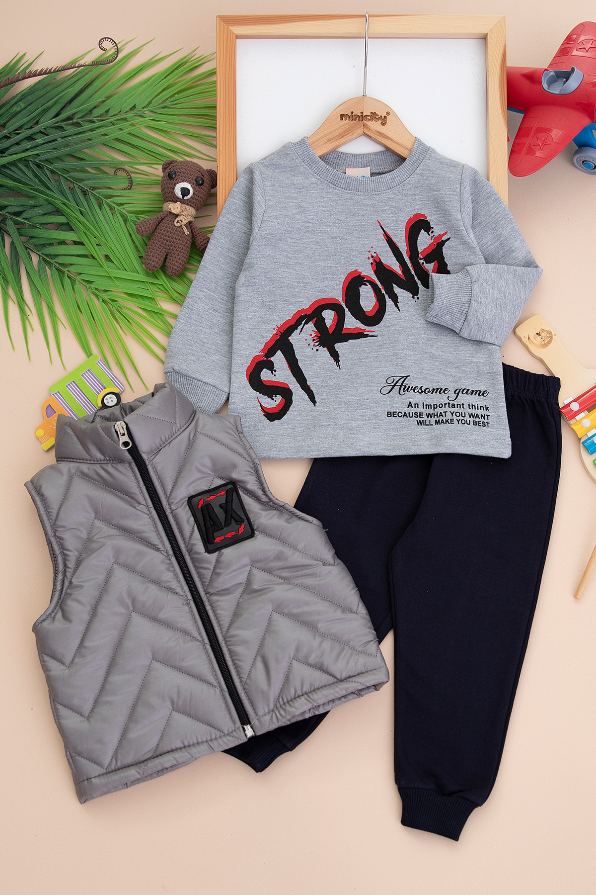 Erkek Çocuk Storong Baskılı Yelekli Takım - 245 (2-4 Yaş)