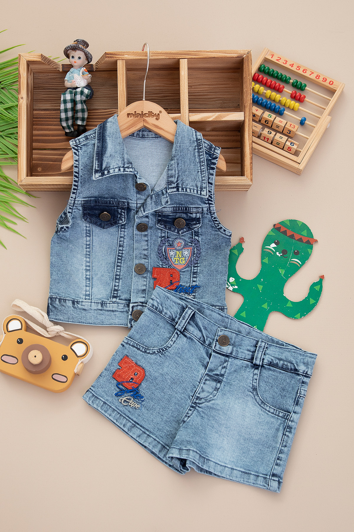 Erkek Çocuk Street Kot Şort Yelek Takım - 1005 (2-5 Yaş)