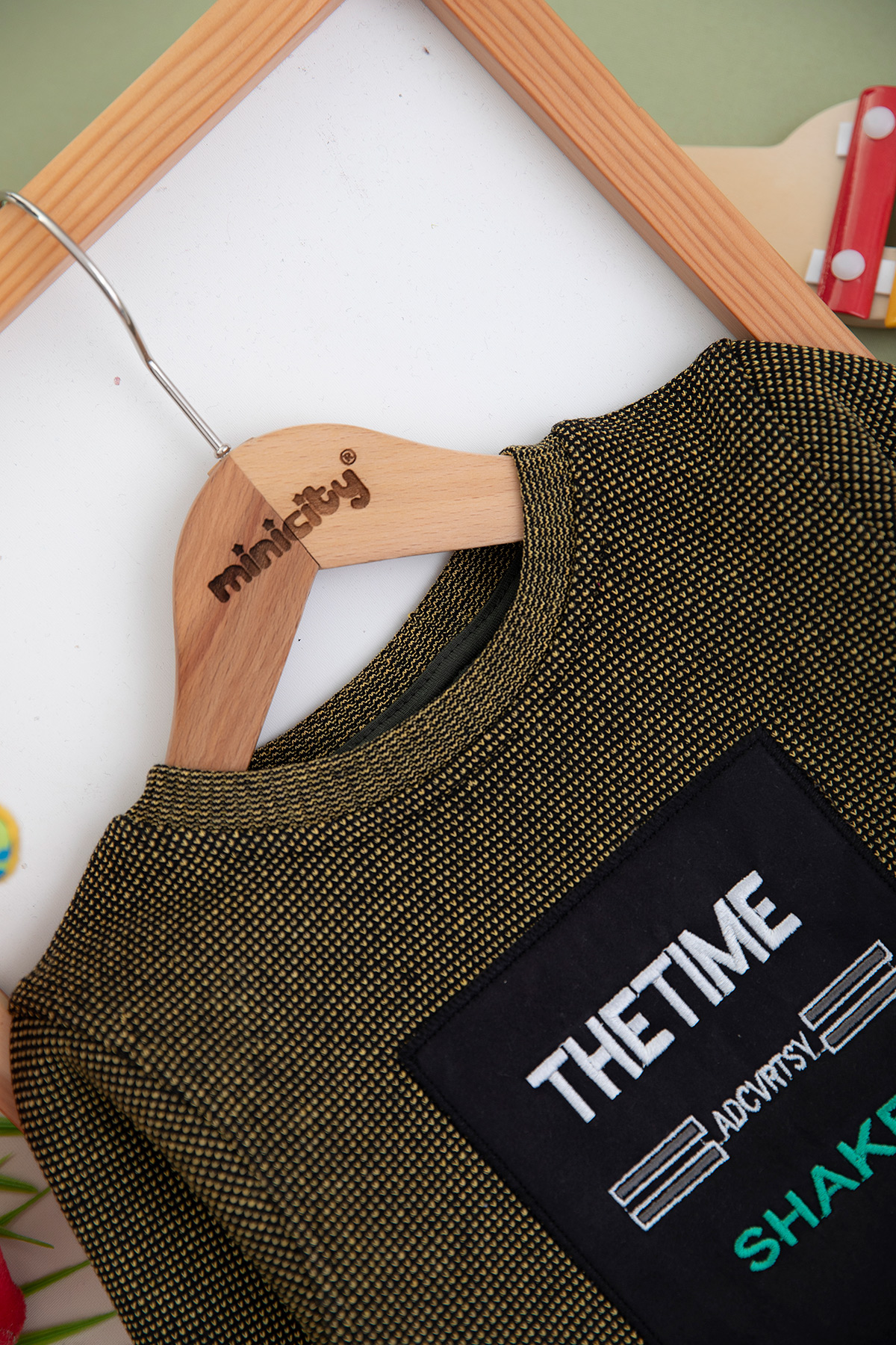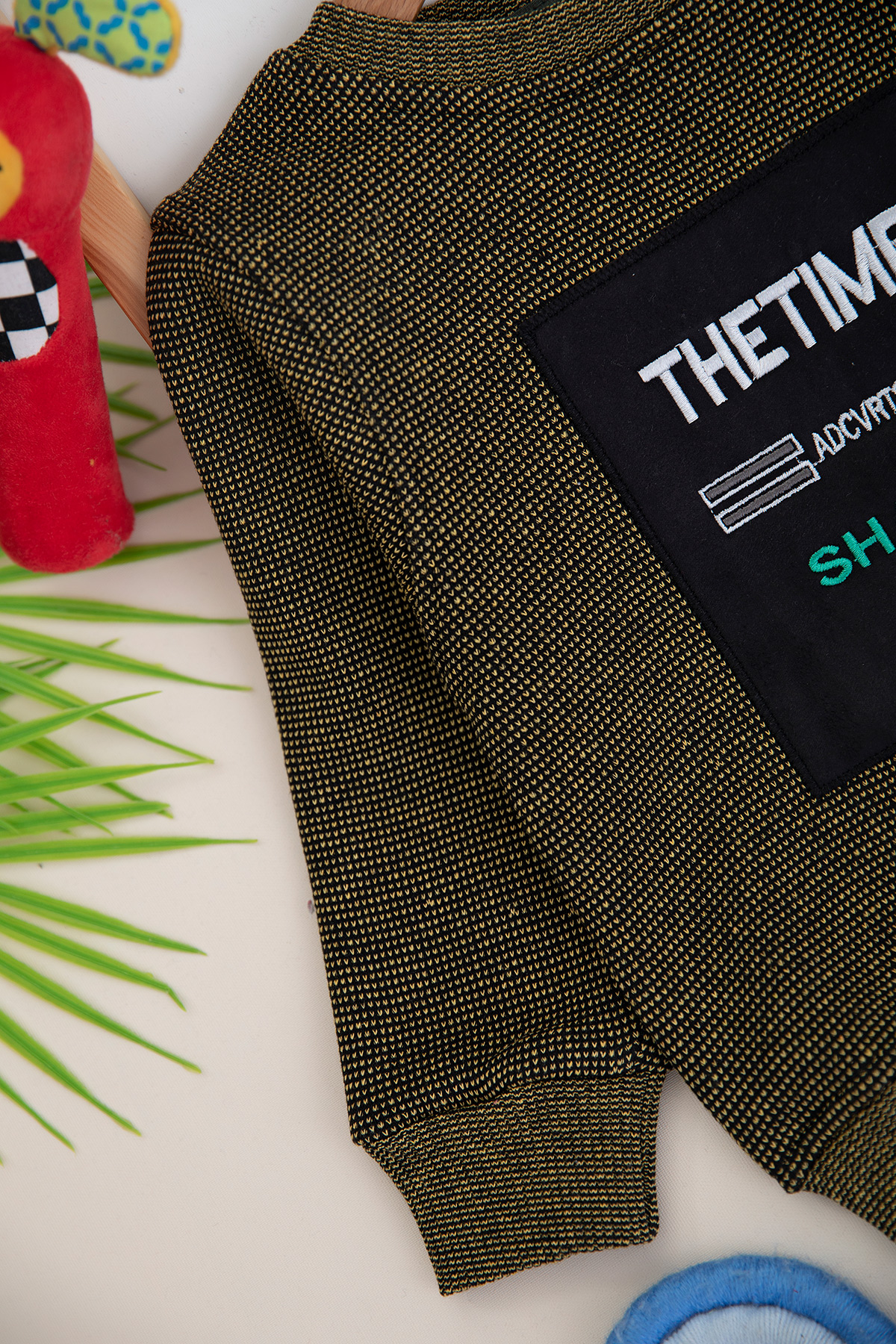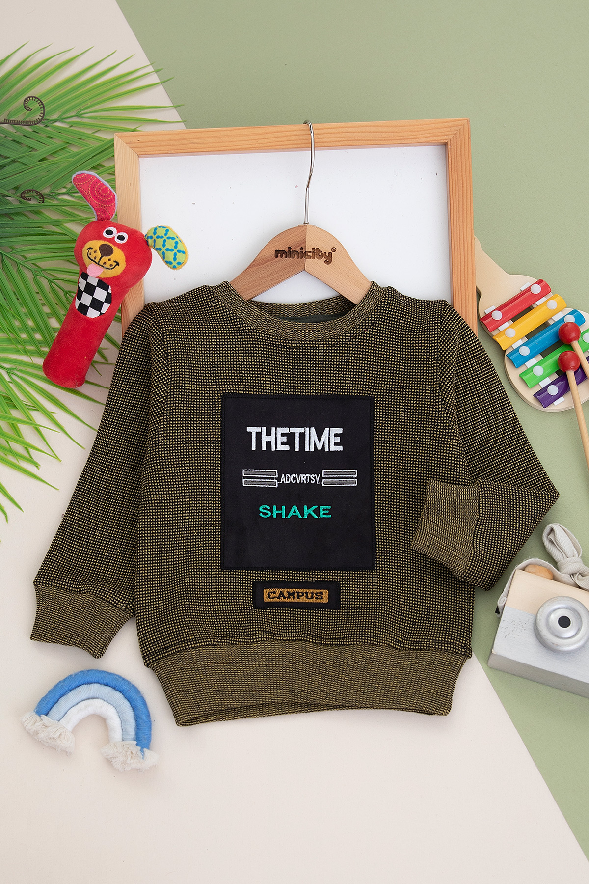 Erkek Çocuk Süet Panolu Yazı Nakışlı Sweat - 1112 (1-4 Yaş)